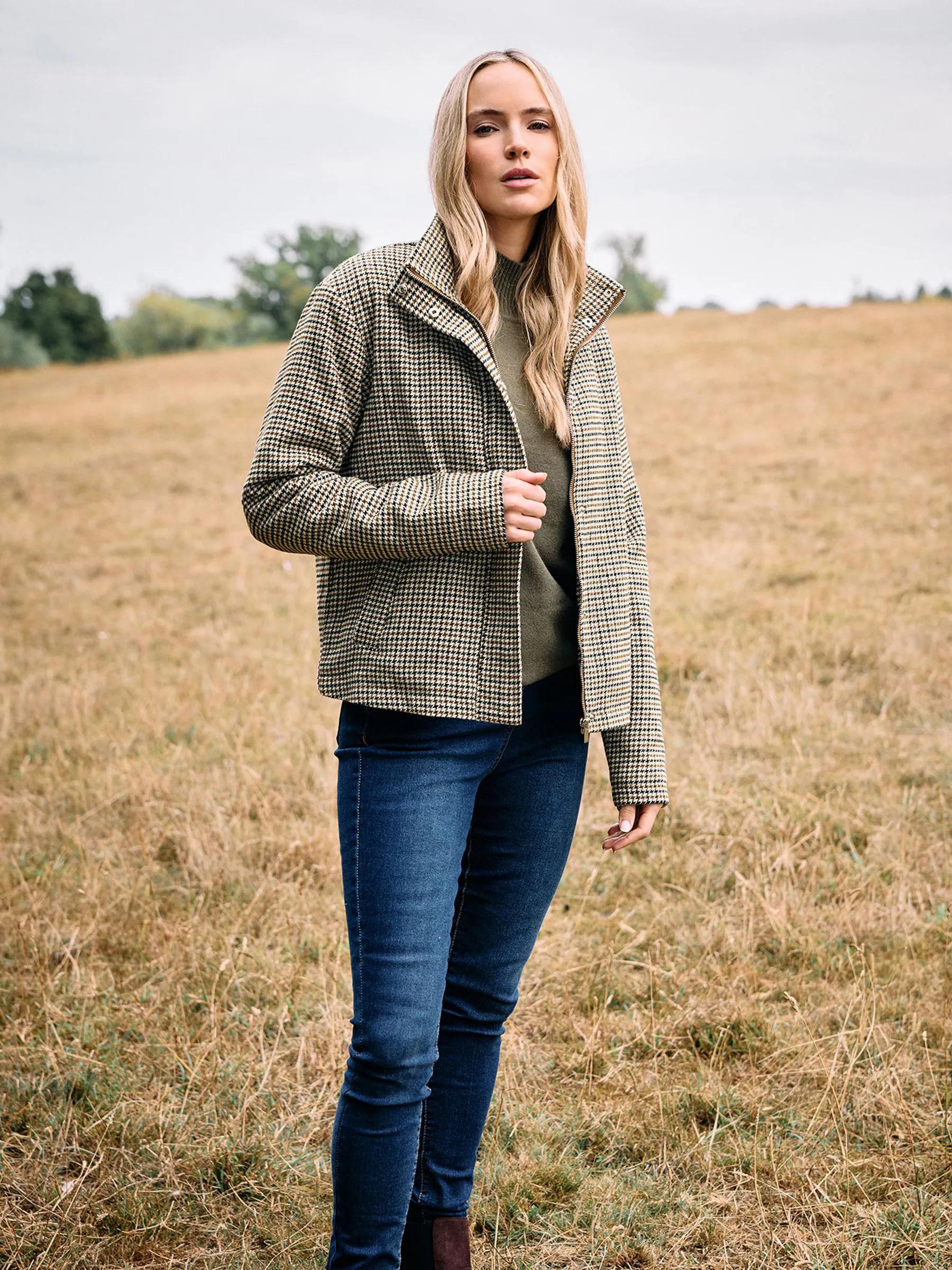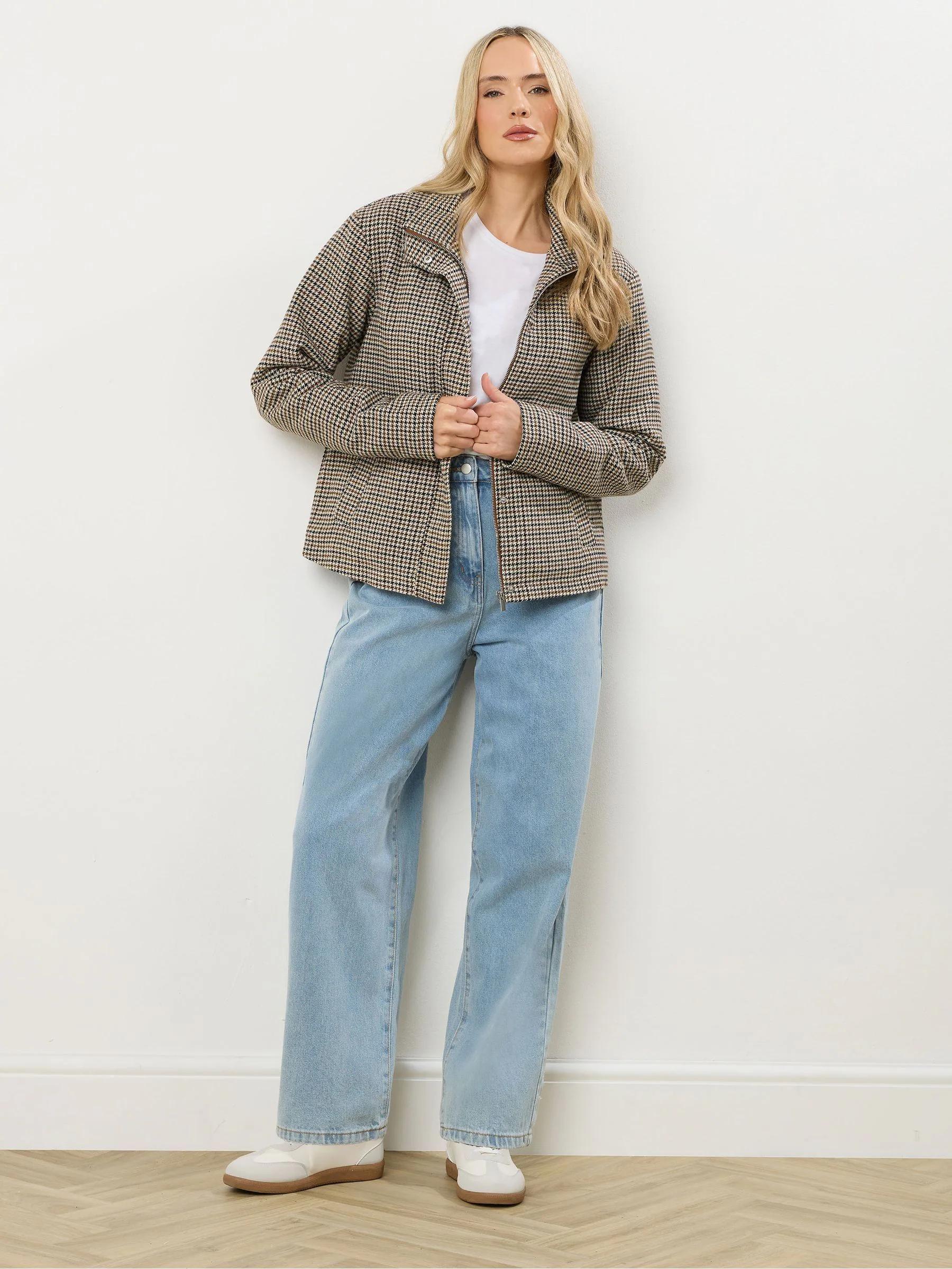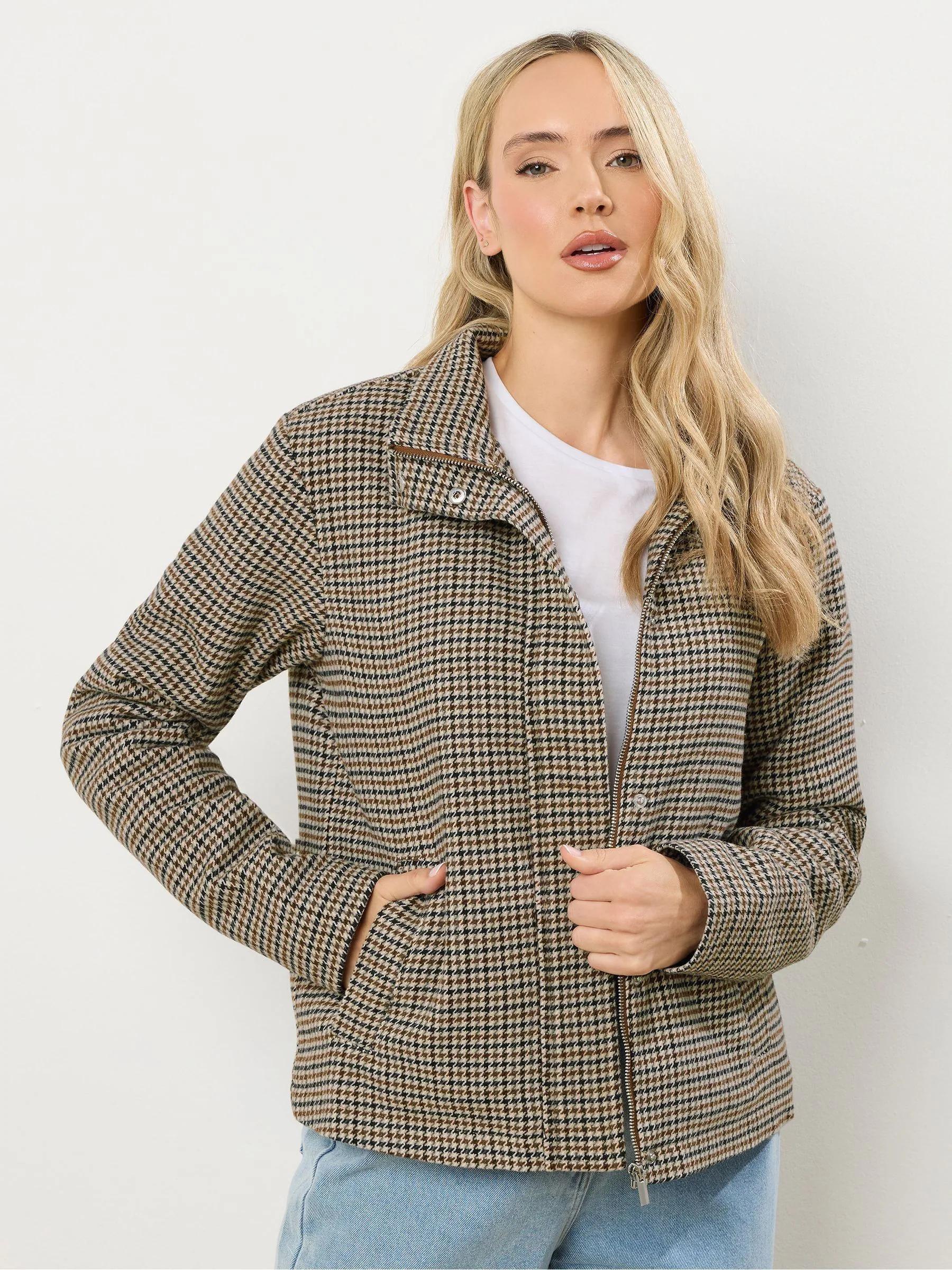 Long Tall Sally Brown Check Funnel Neck Jacket