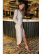 Dresses | Champagne Sparkle Long Sleeve Draped Waist Wrap Midi Dress | AX Paris