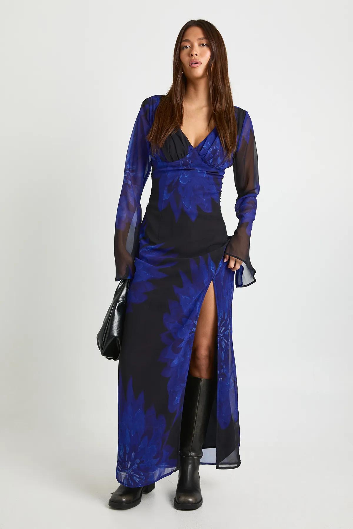 Discover Floral Long Sleeve Chiffon Plunge Maxi Dress available to buy online at boohoo.com. Available with quick delivery and easy return options. Shop now!