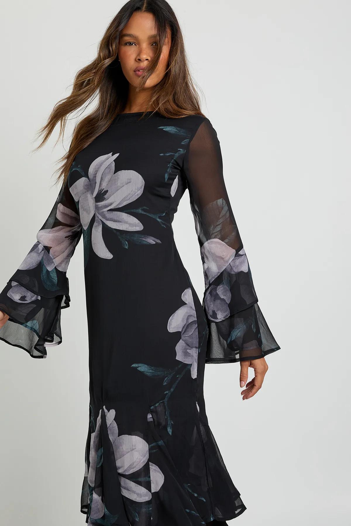 Discover Floral Chiffon Godet Layered Maxi Dress available to buy online at boohoo.com. Available with quick delivery and easy return options. Shop now!