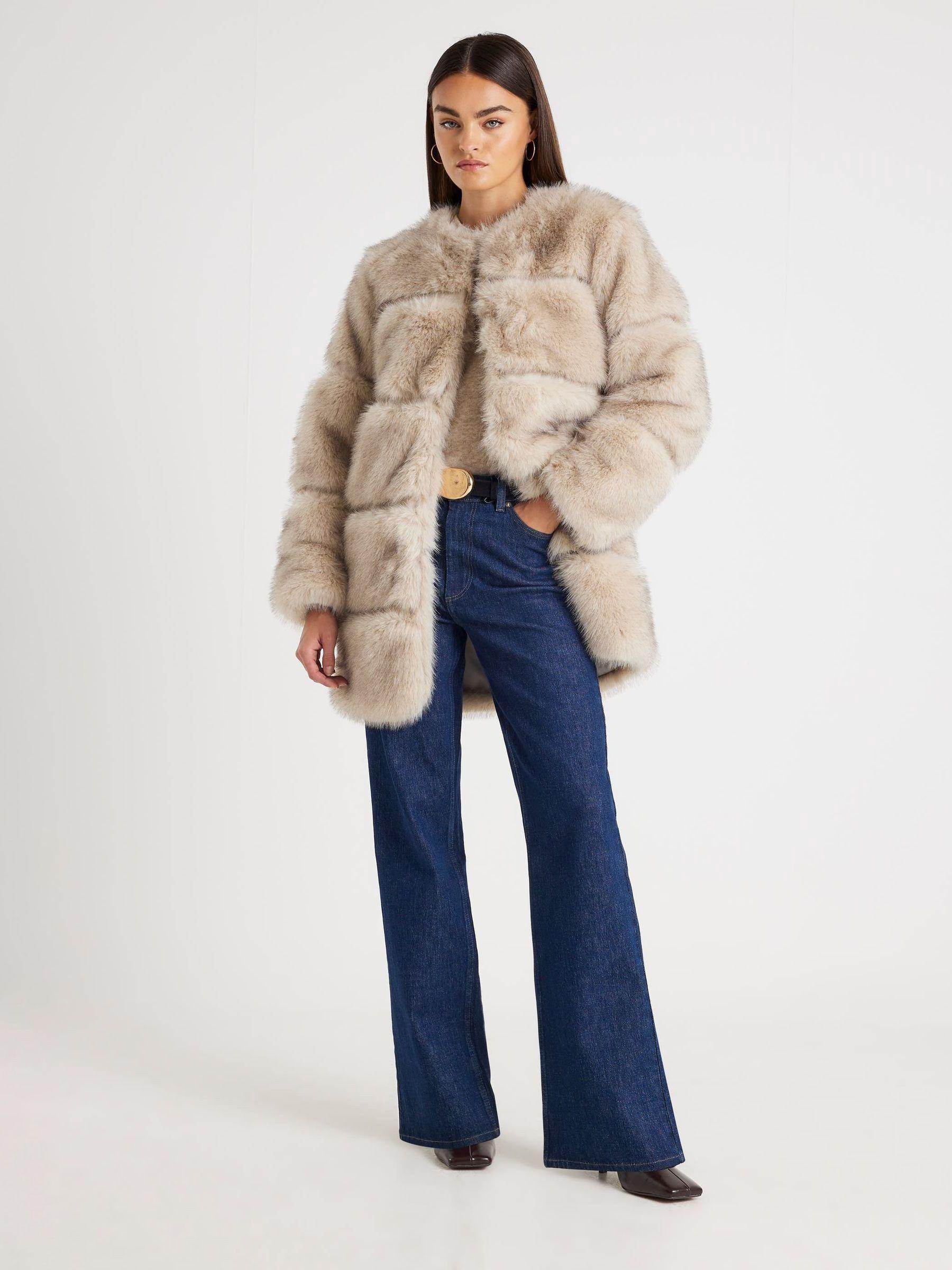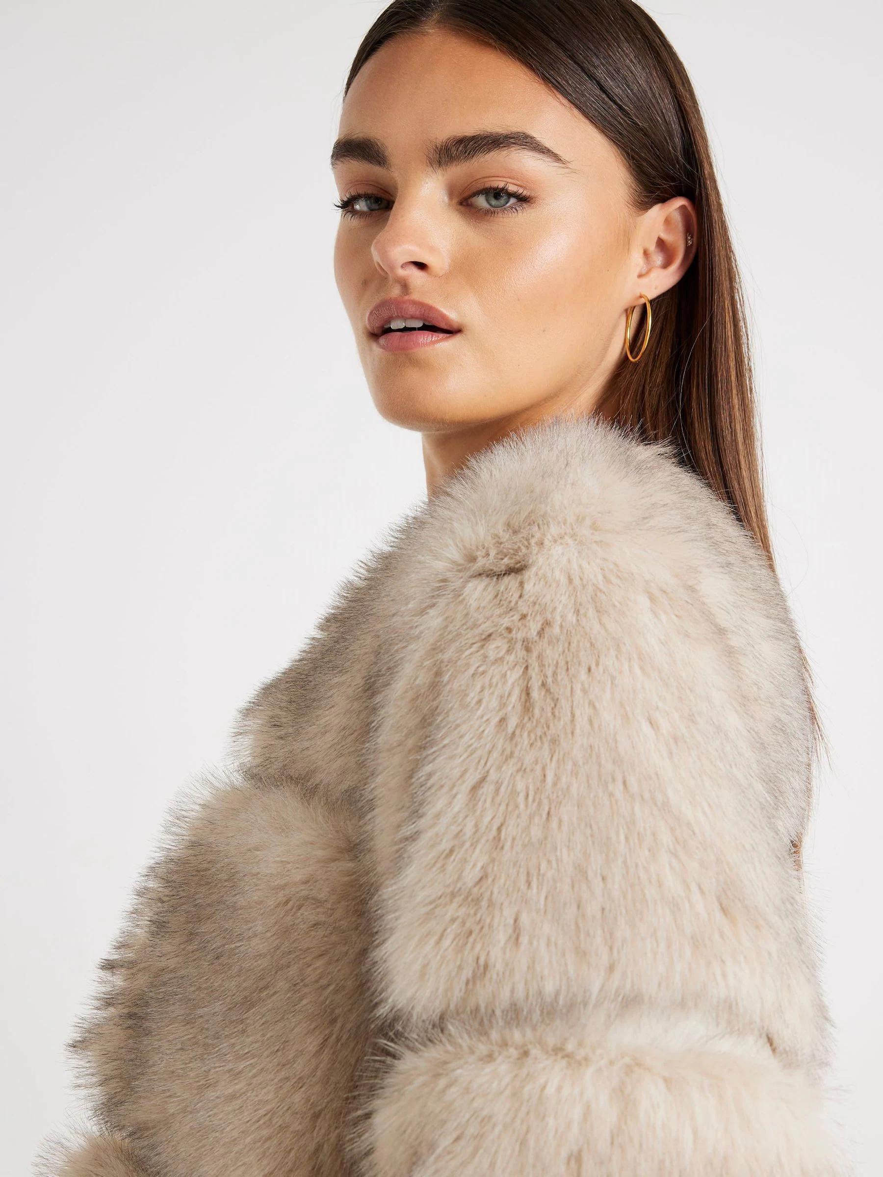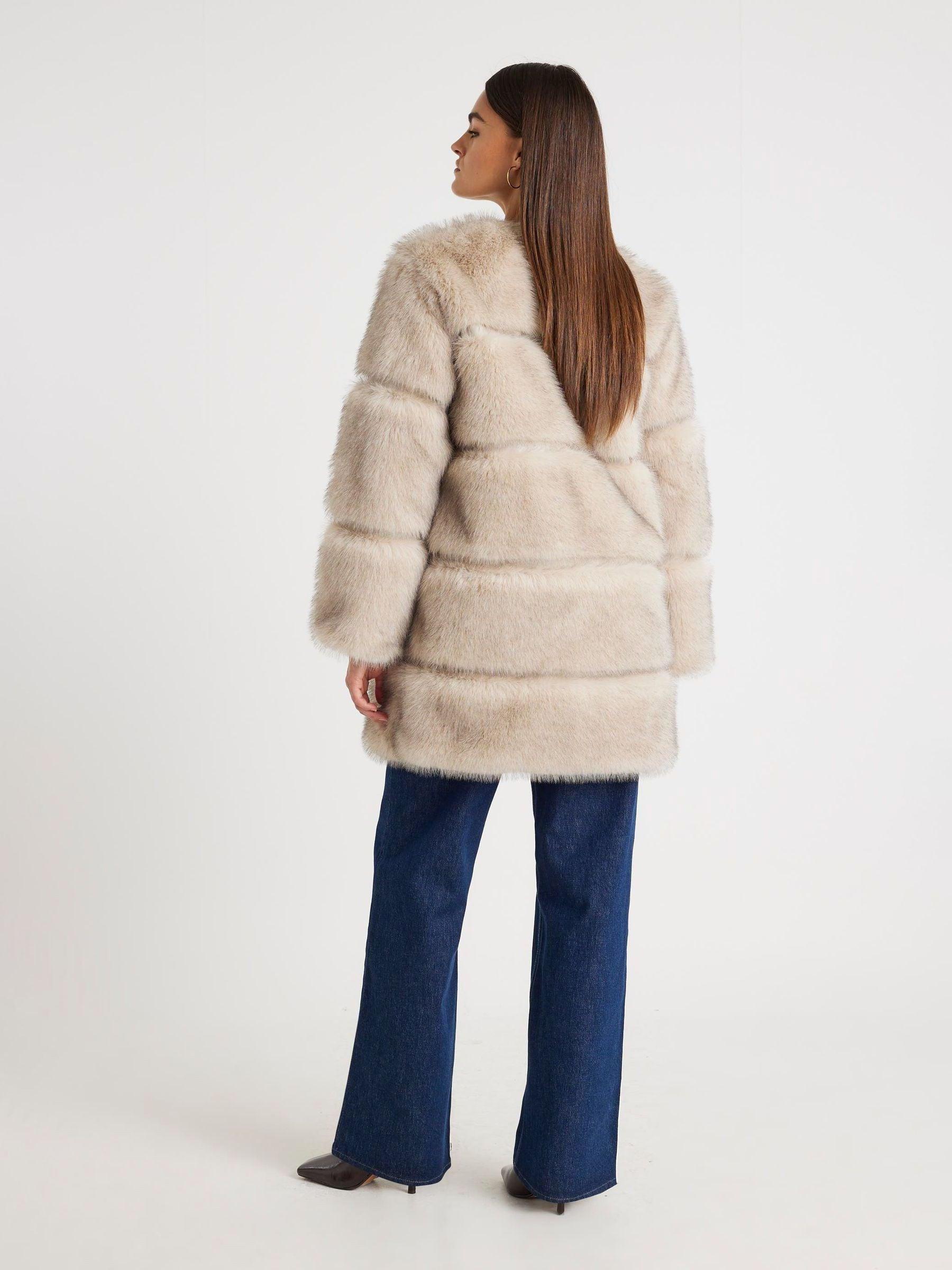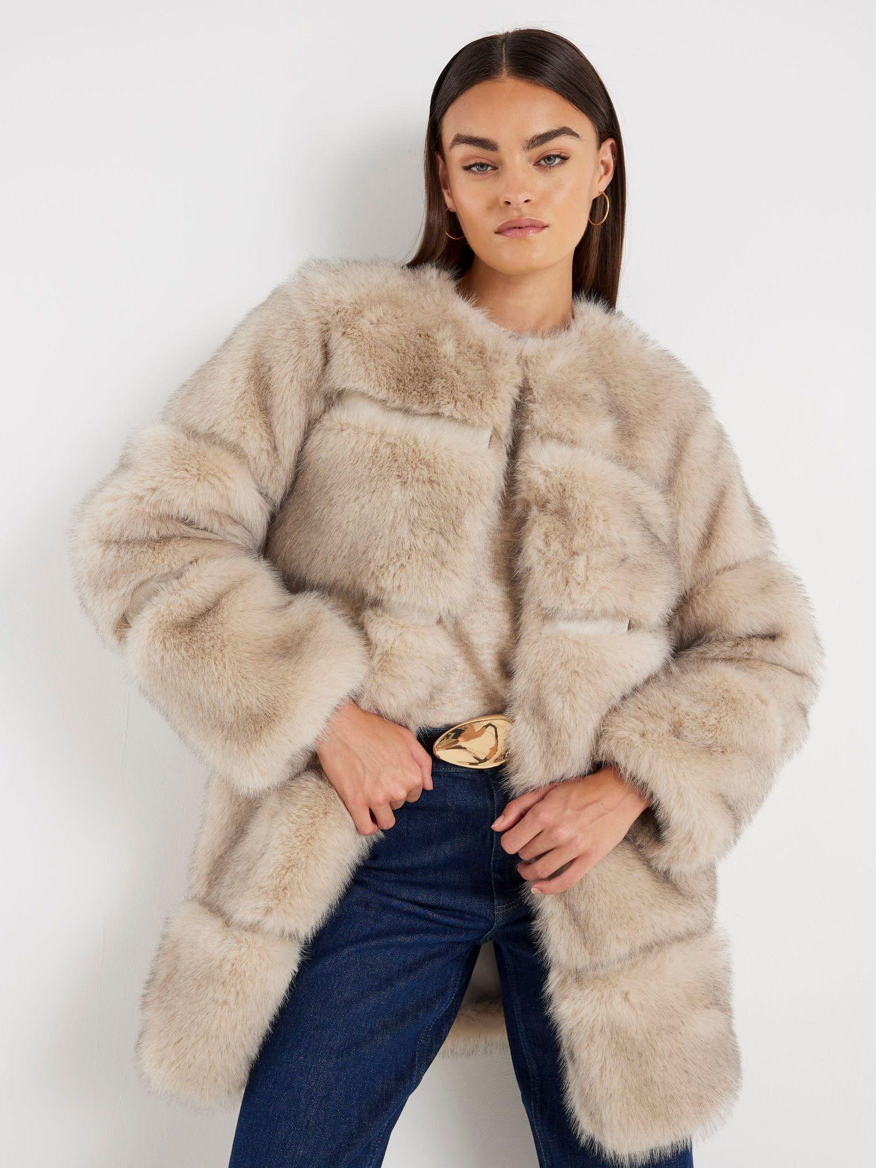 River Island Cream Long Pannelled Fur Jacket