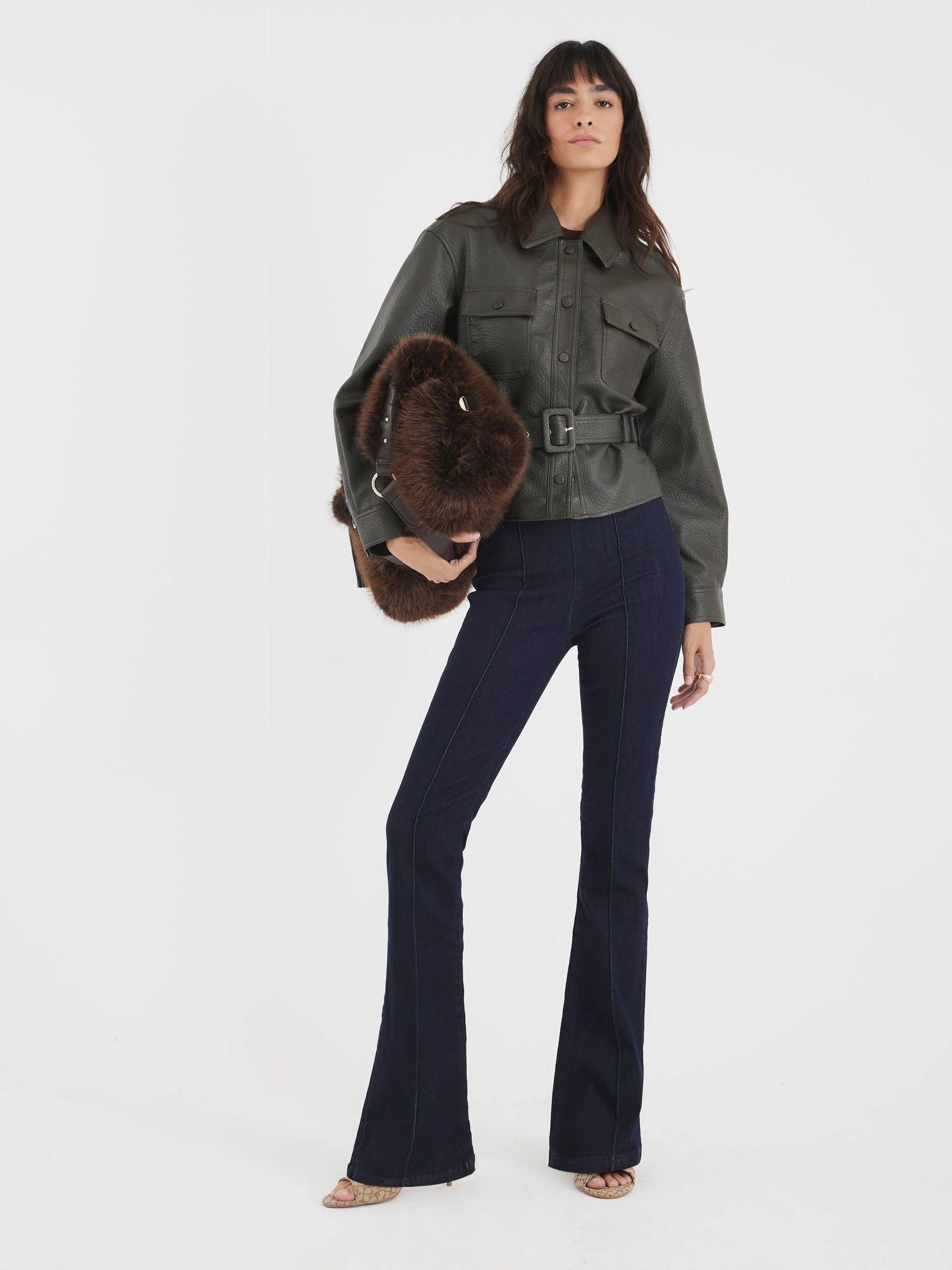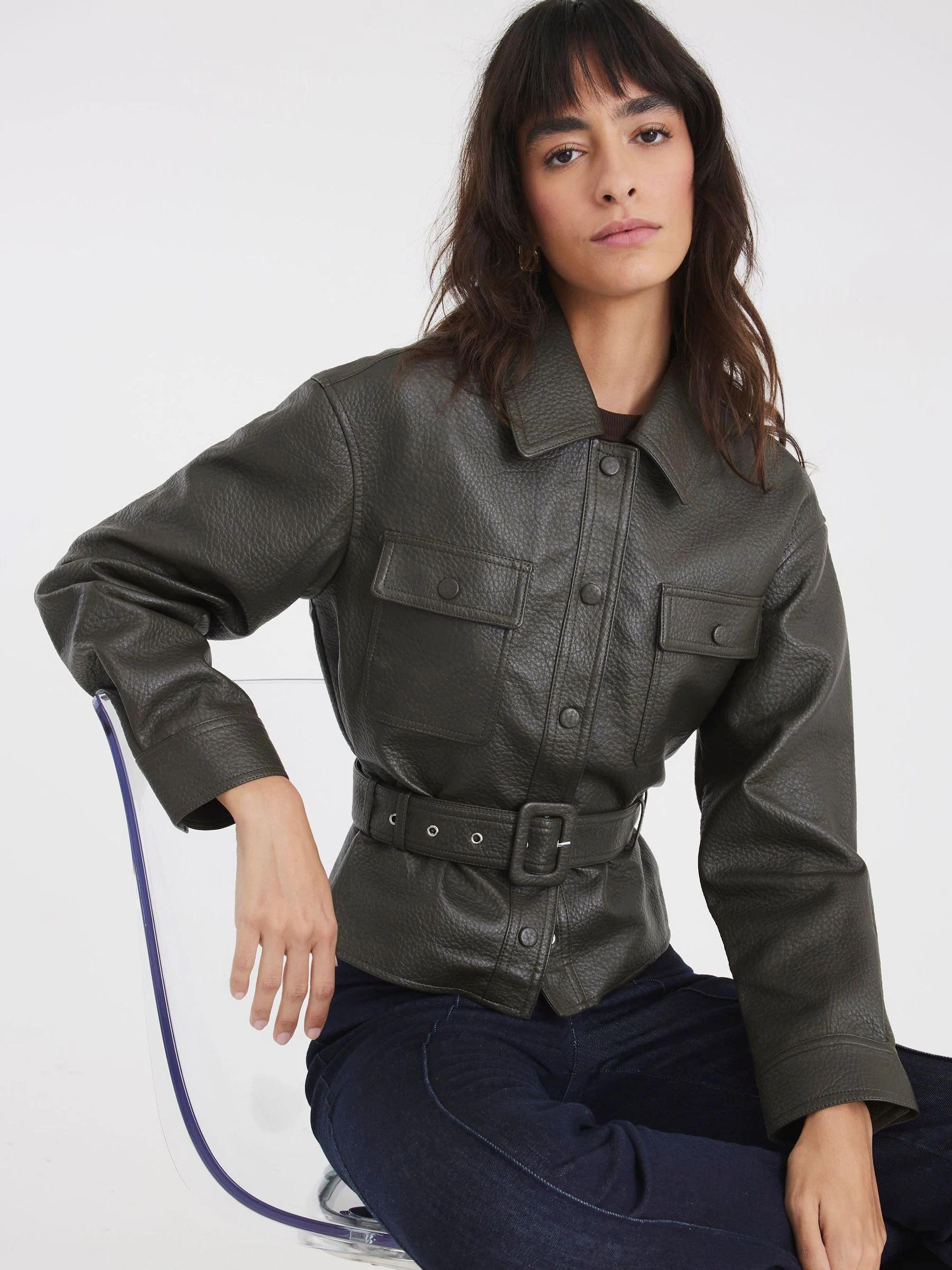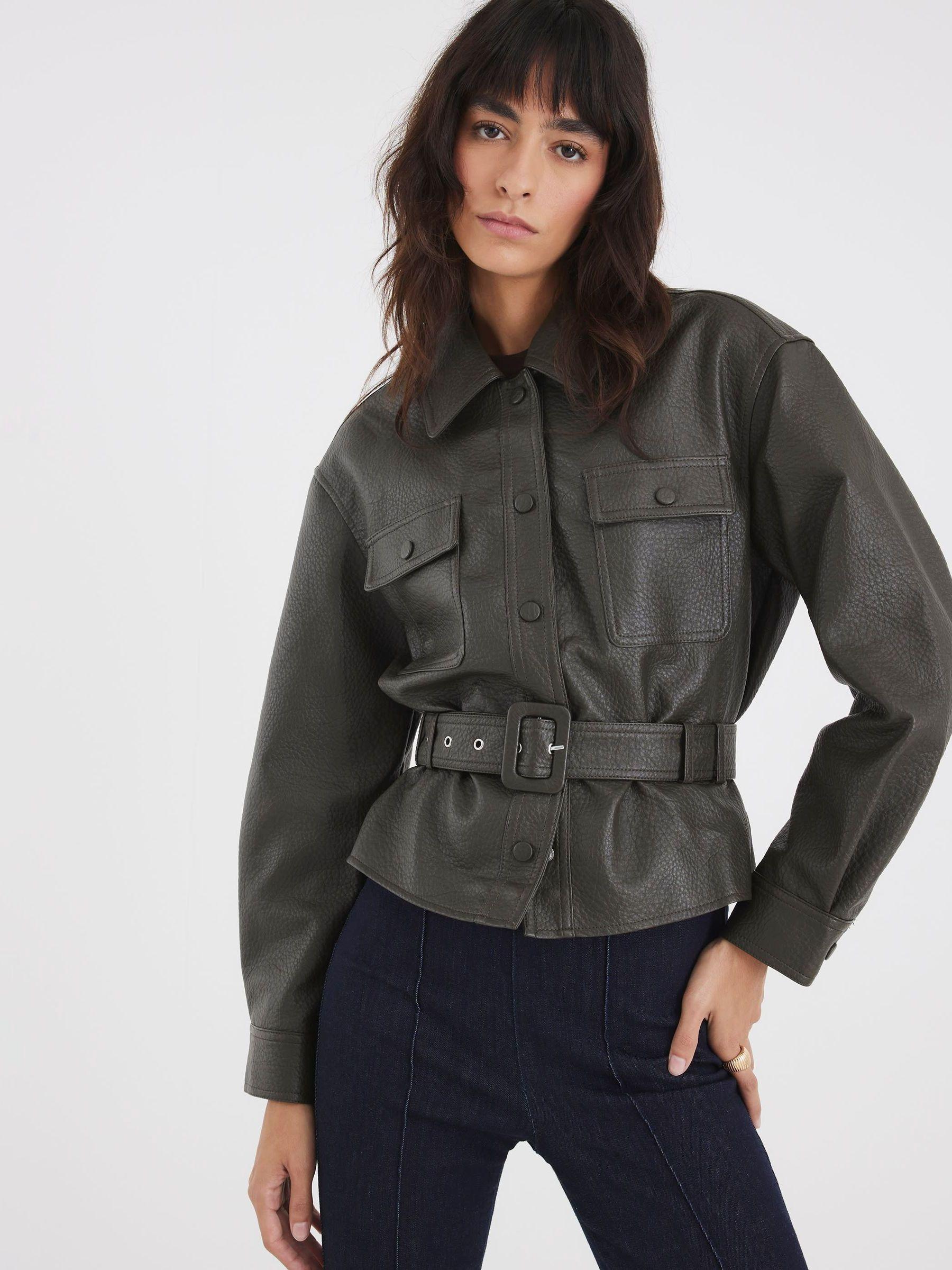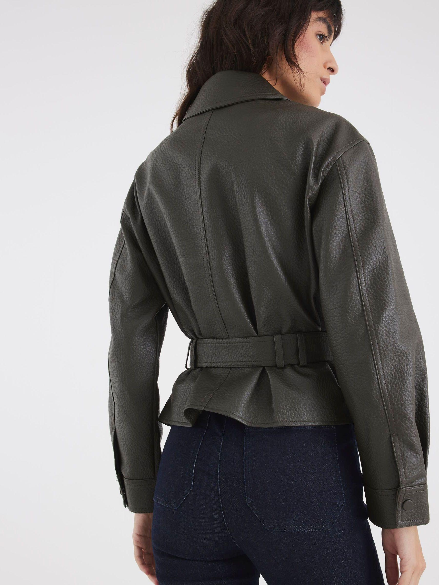 River Island Green Faux Leather Belted Long Sleeve Jacket