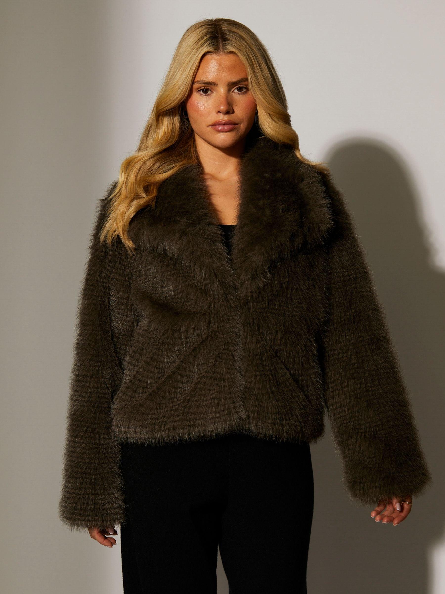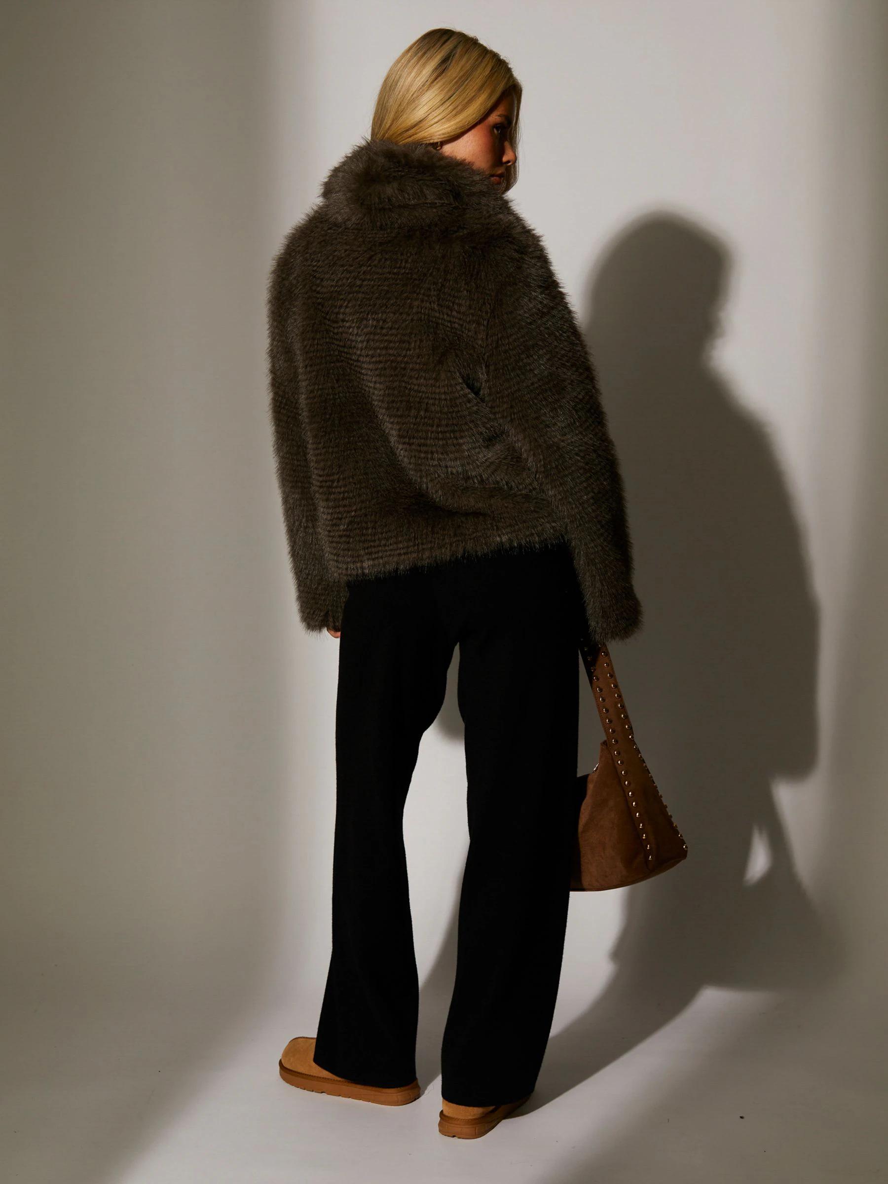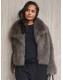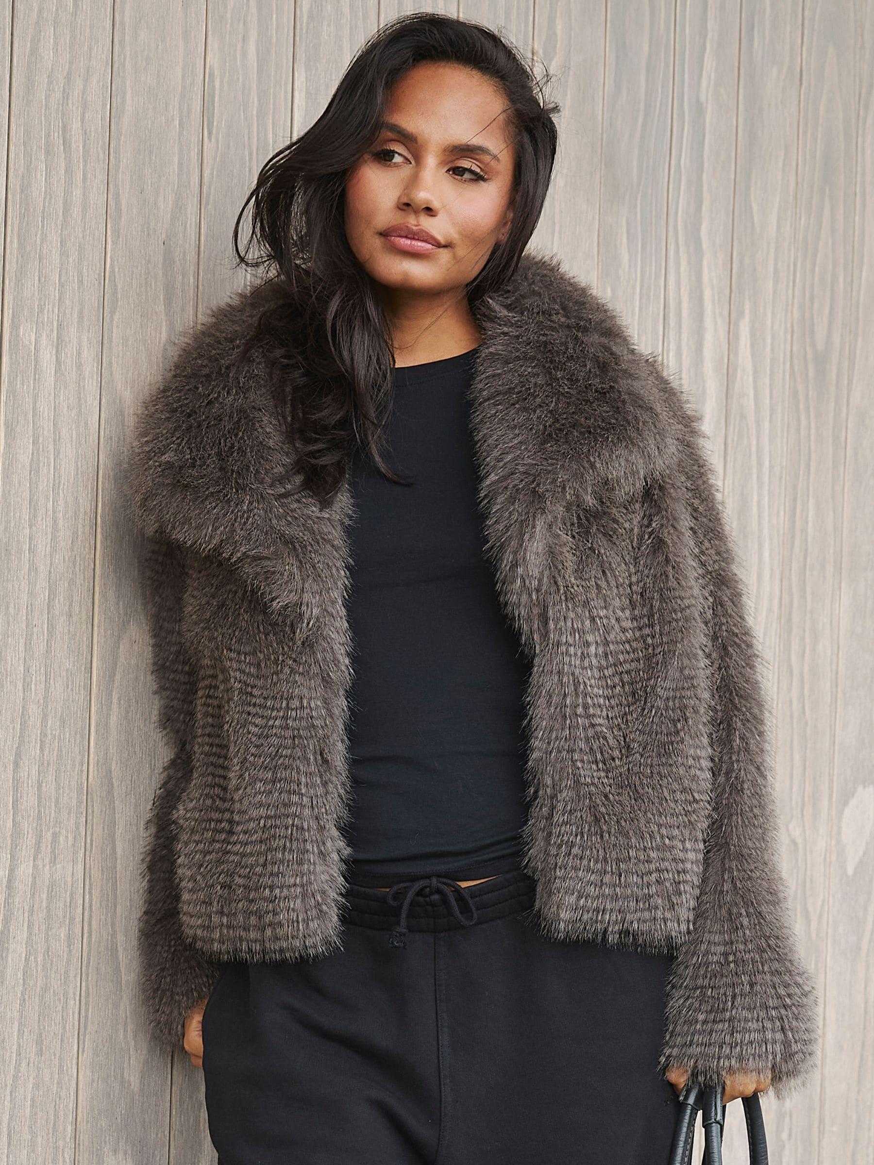 South Beach Grey Tipped Long Pile Faux Fur Collar Detail Short Jacket