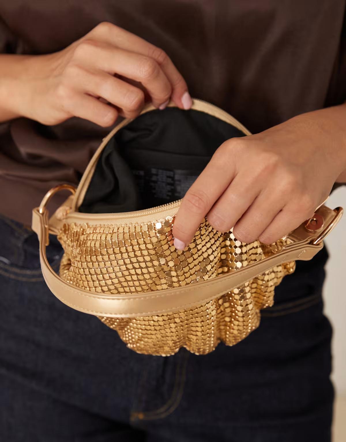 BrandThis is ASOS DESIGN – your go-to for all the latest trends, no matter who you are, where you’re from and what you’re up to. Exclusive to ASOS, our universal brand is here for you, and comes in all our fit ranges: ASOS Curve, Tall, Petite and Maternity. Created by us, styled by you.Look After MeWipe clean with a soft dry clothAbout MeChainmail: fabric with open construction and metallic yarns