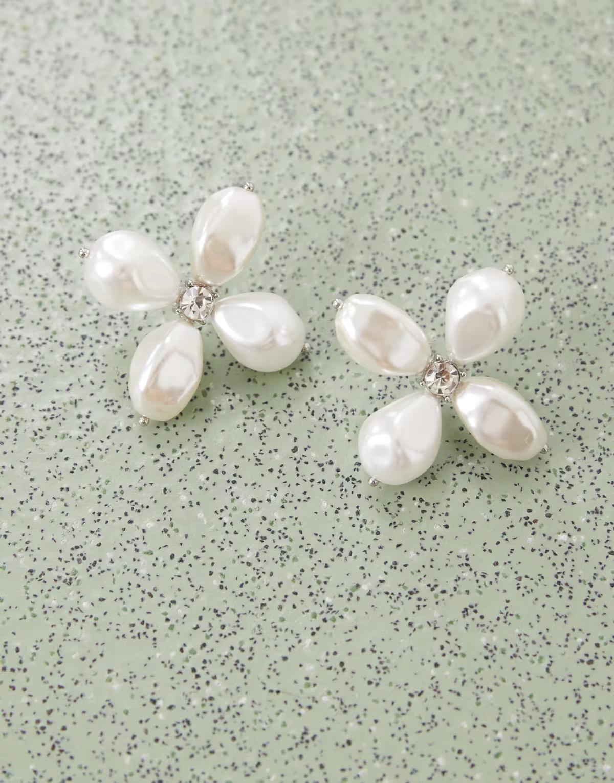 Reclaimed Vintage oversized flower earrings with pearls in silver