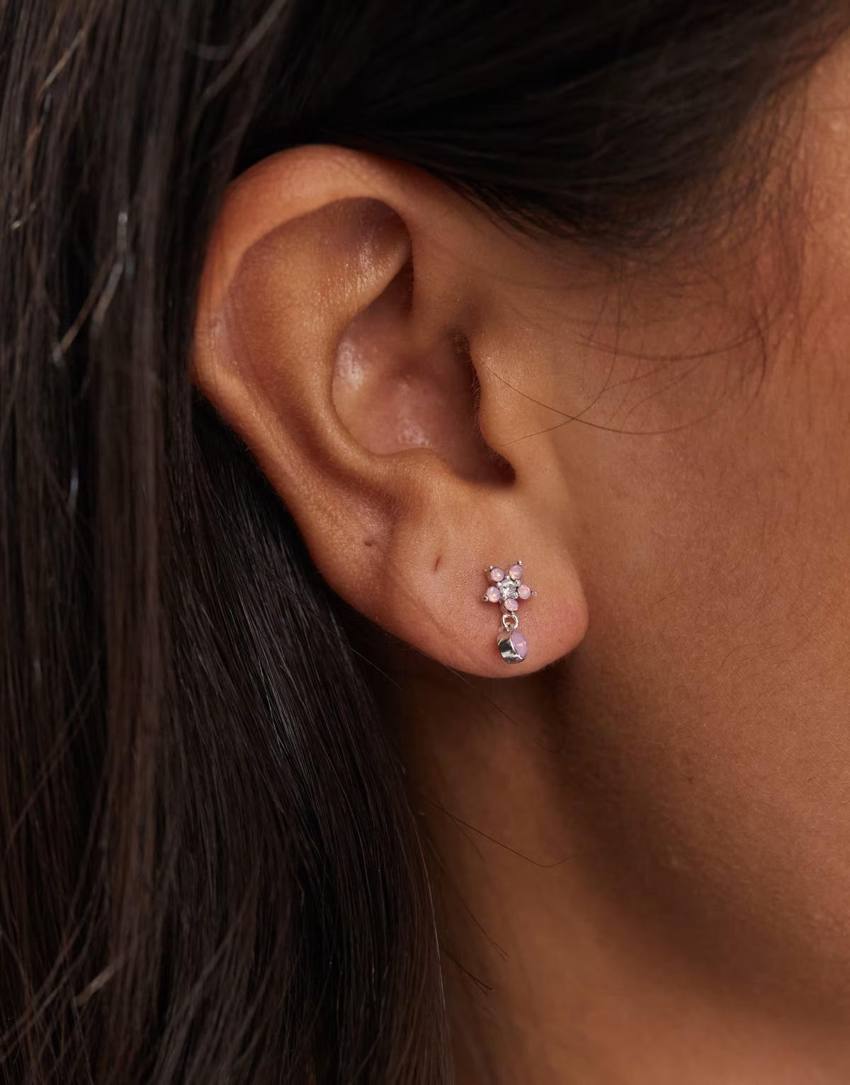 Kingsley Ryan gem set flower drop earring in sterling silver