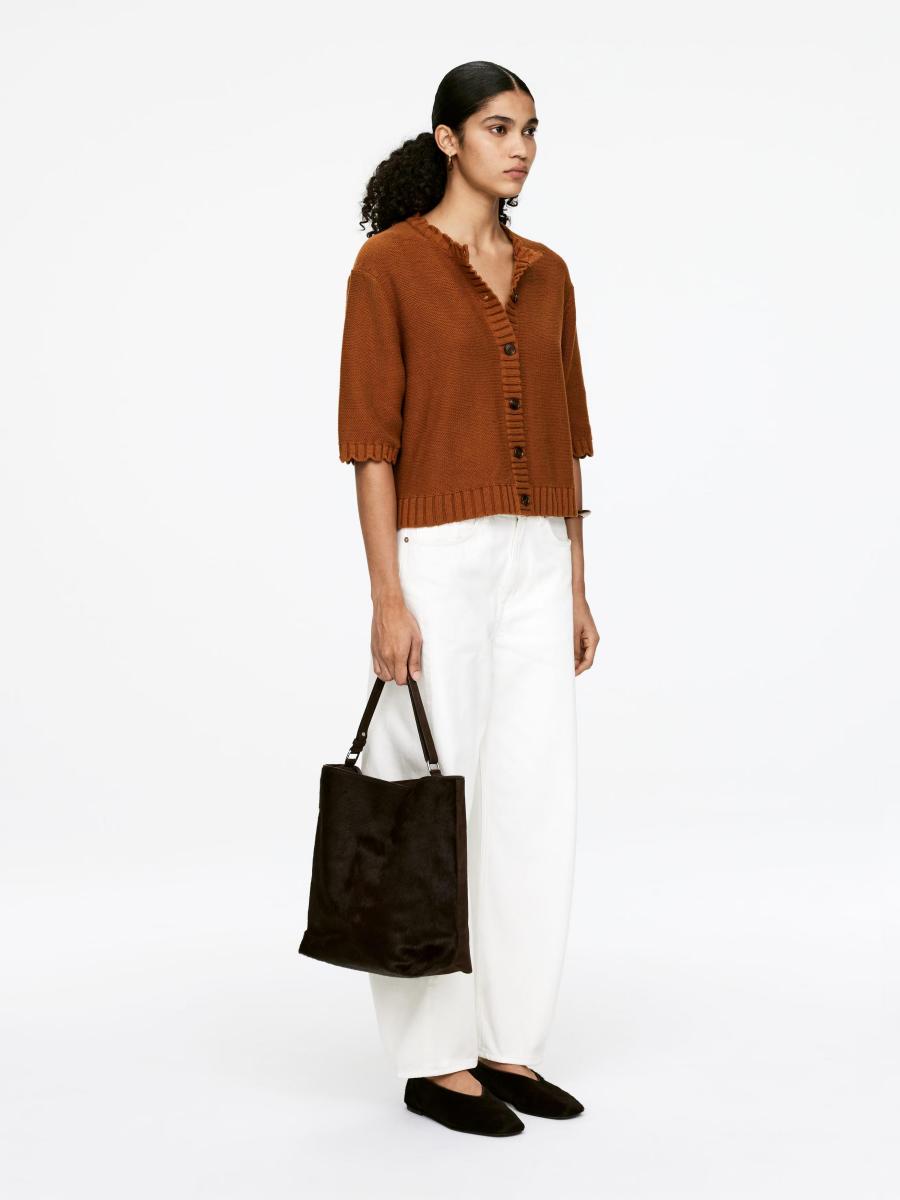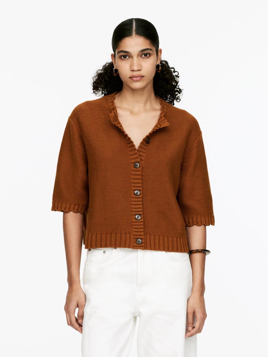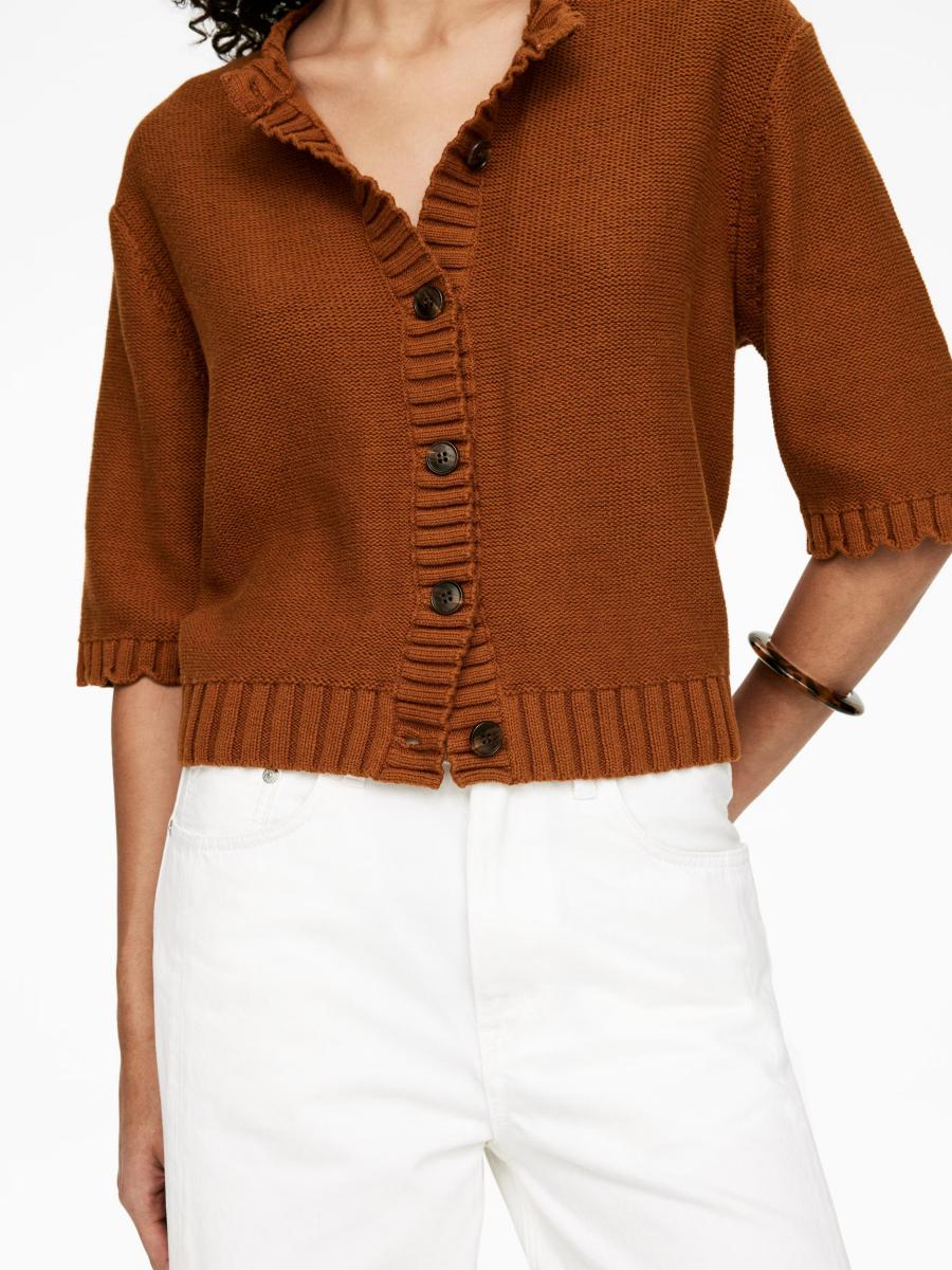 Cotton cardigan with three-quarter-length sleeves, button closure, and scallop edges at the neck and sleeve endings. Loose fit.ARKET/Women's clothes/Women's knitwear/Women's cardigans