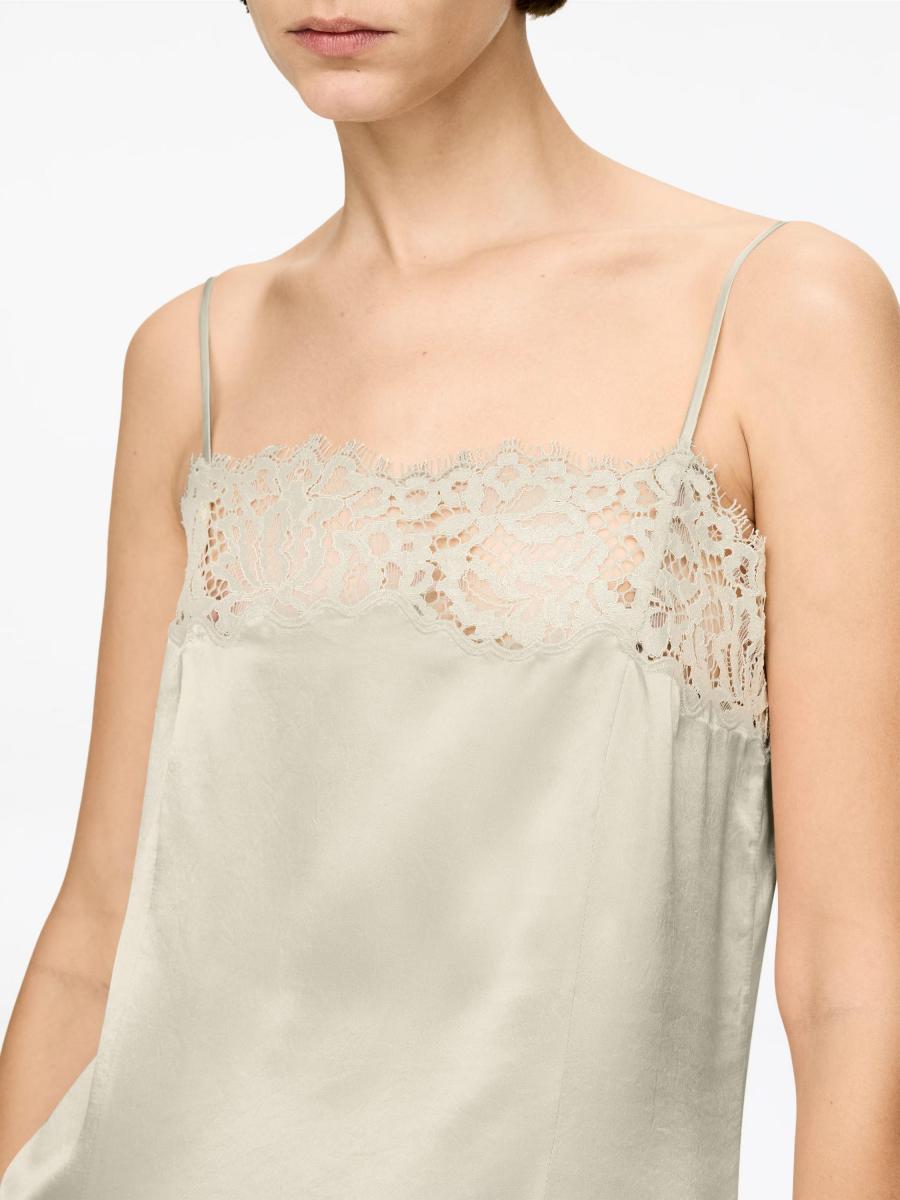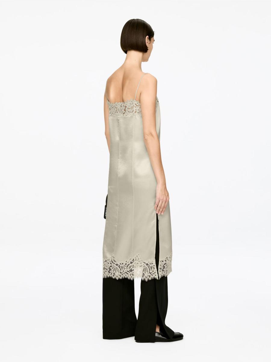 Strap dress in cellulose acetate, with satin lace at the chest and hem, panelled seams and straps in shell fabric.ARKET/Women's clothes/Women's dresses