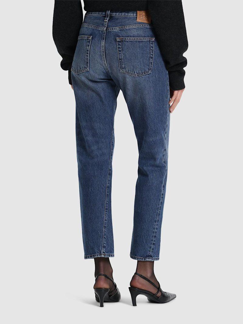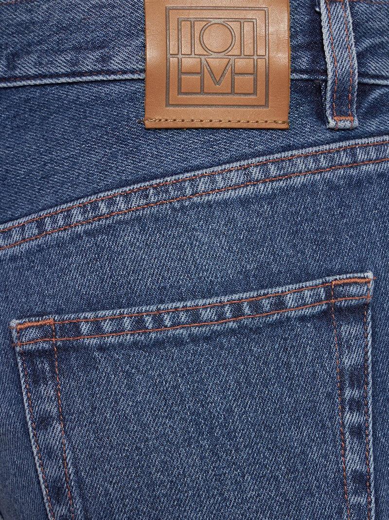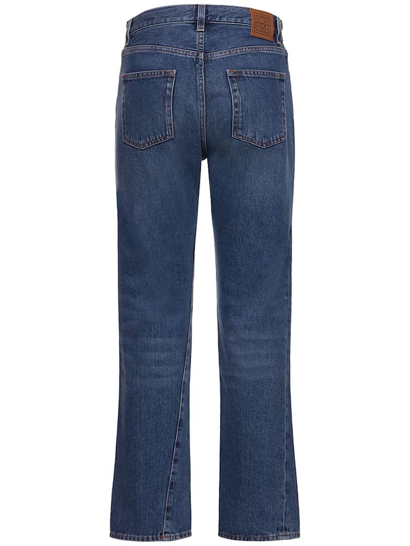 扭曲接缝棉质牛仔裤 - 蓝色 - 女士 - Toteme - 正面纽扣和隐藏式拉链开合.