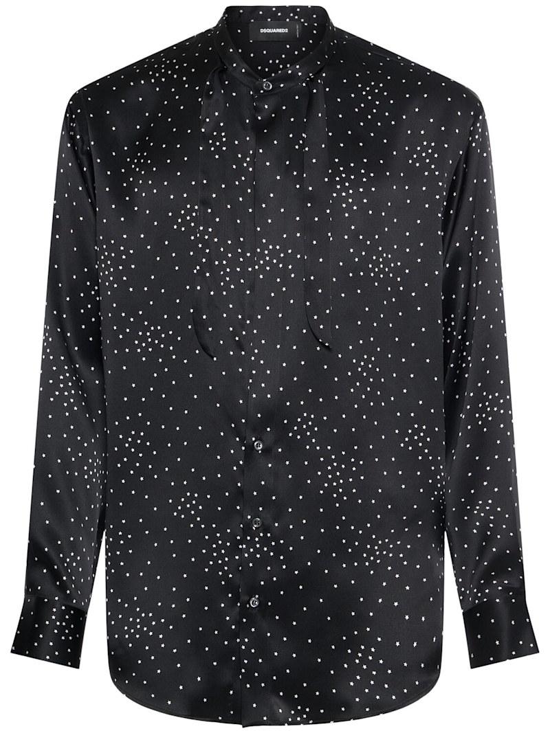 Starry Night真丝衬衫 - Black/White Sta - 男士 - Dsquared2 - 正面纽扣开合.