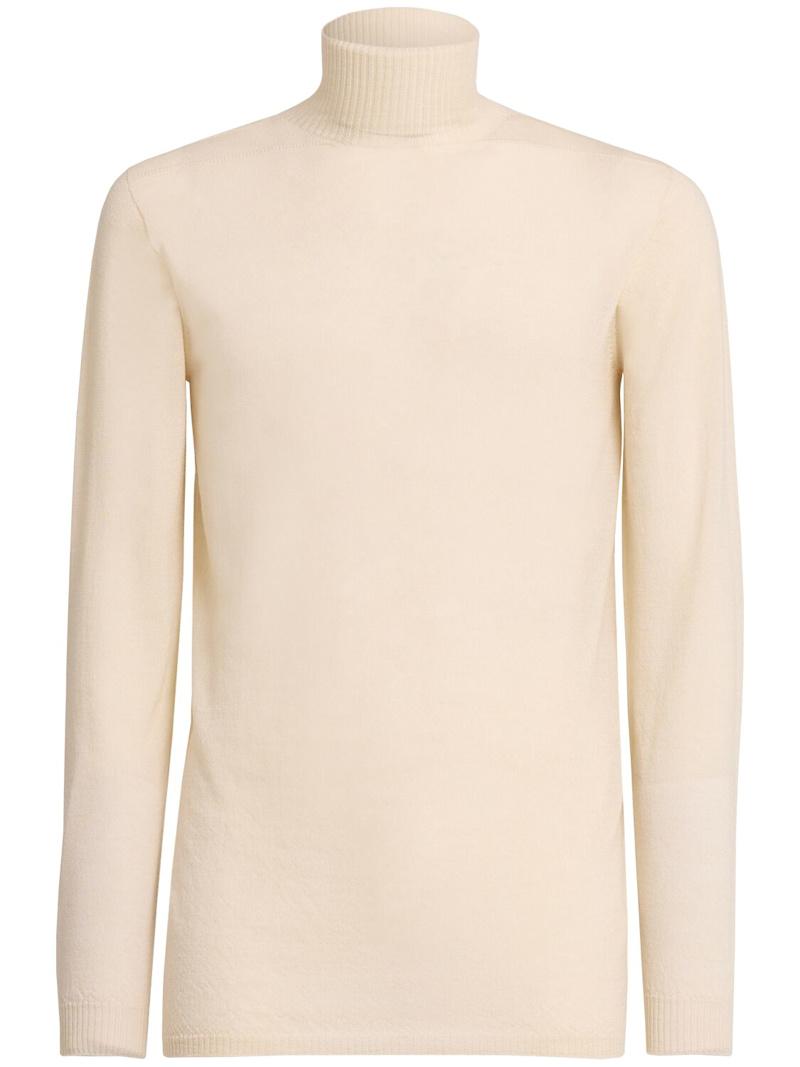 Level高领羊毛针织上衣 - Natural - 男士 - Rick Owens - 罗纹领口、袖口和下摆