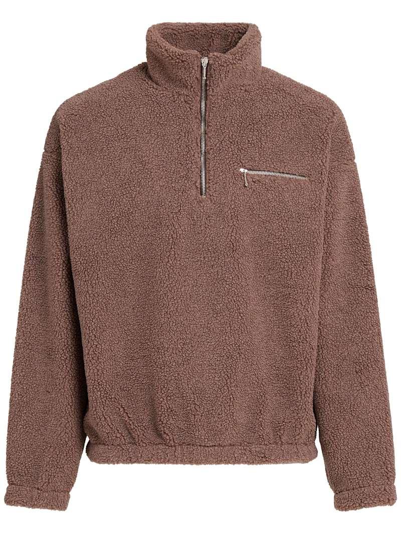 羊毛混纺毛绒半长拉链开合毛衣 - 棕色 - 男士 - Lc23 - 正面半长拉链开合.