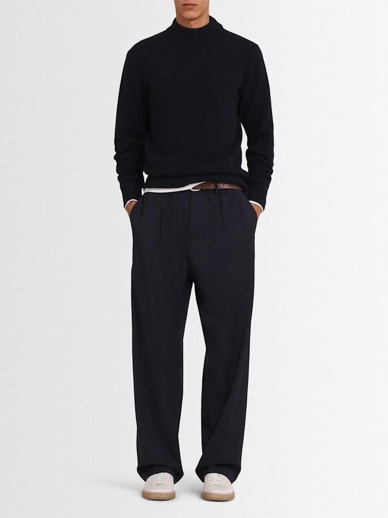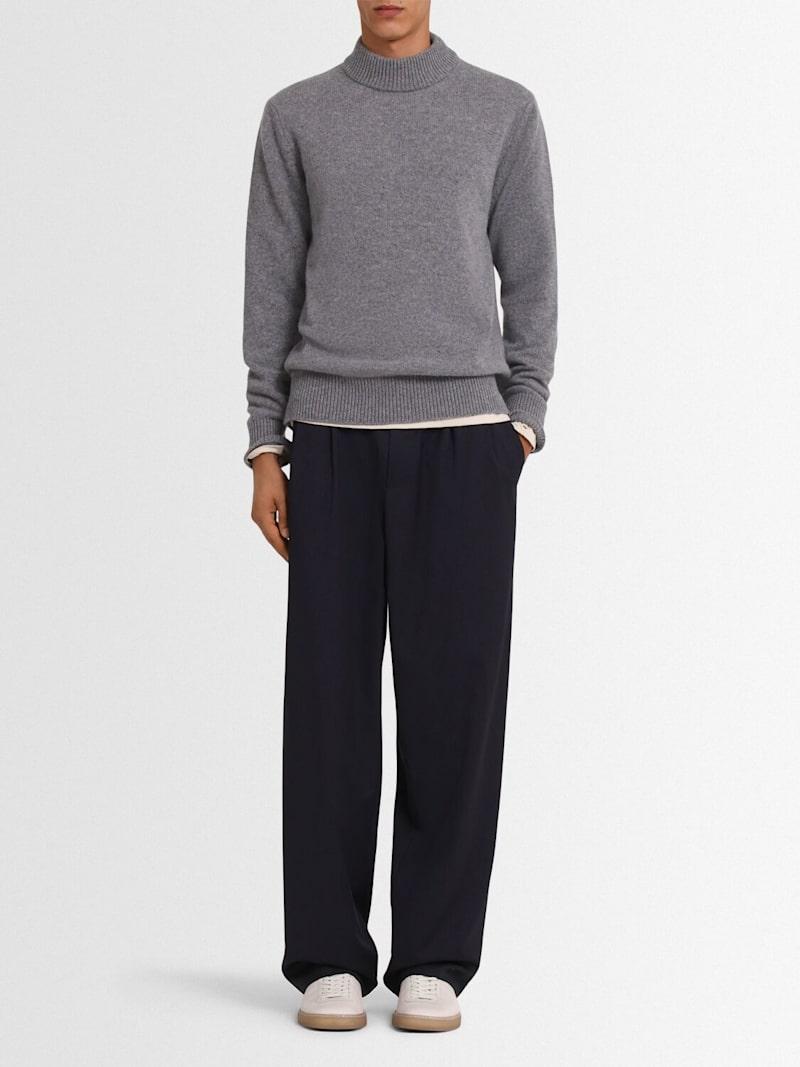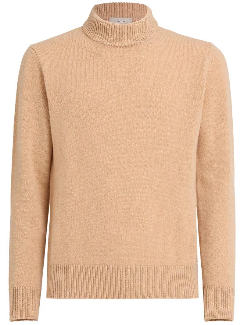 羊毛针织漏斗领毛衣 - 米黄色 - 男士 - The Core - 精细度:5 Gauge.