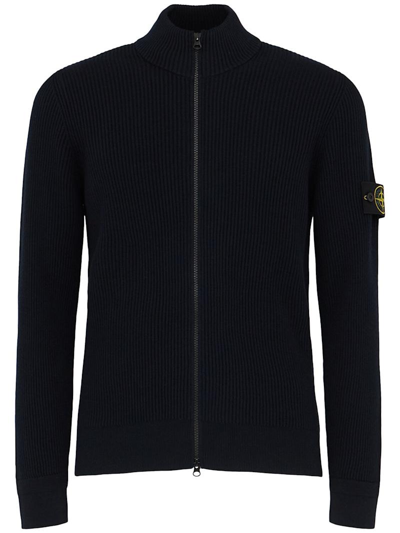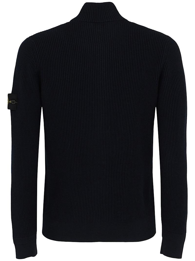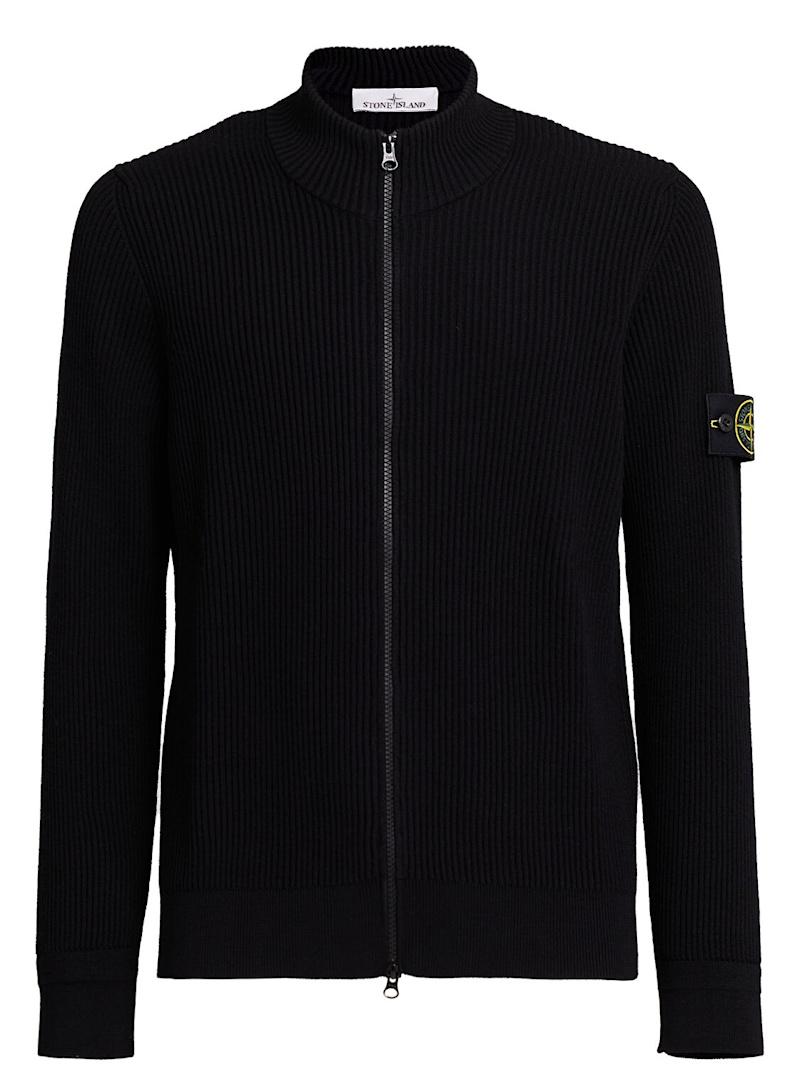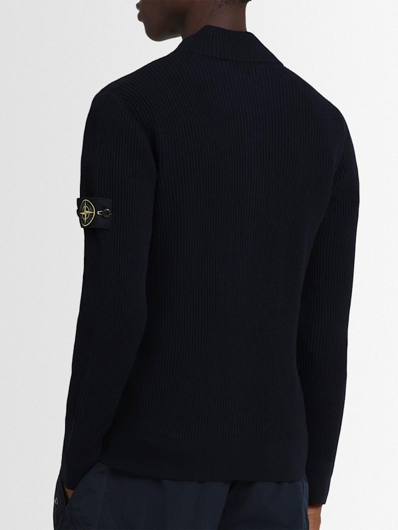 羊毛开衫 - 黑色 - 男士 - Stone Island - 正面拉链开合.