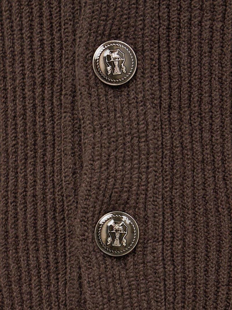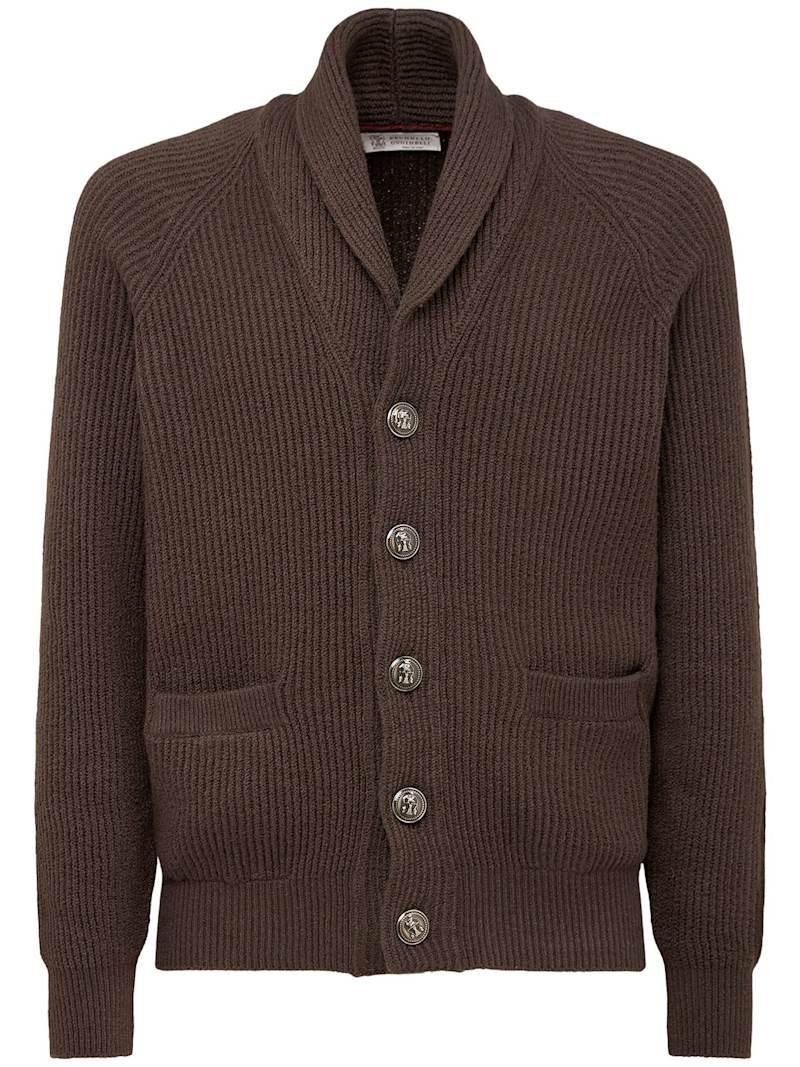 棉质开衫 - 深棕色 - 男士 - Brunello Cucinelli - 正面纽扣开合.