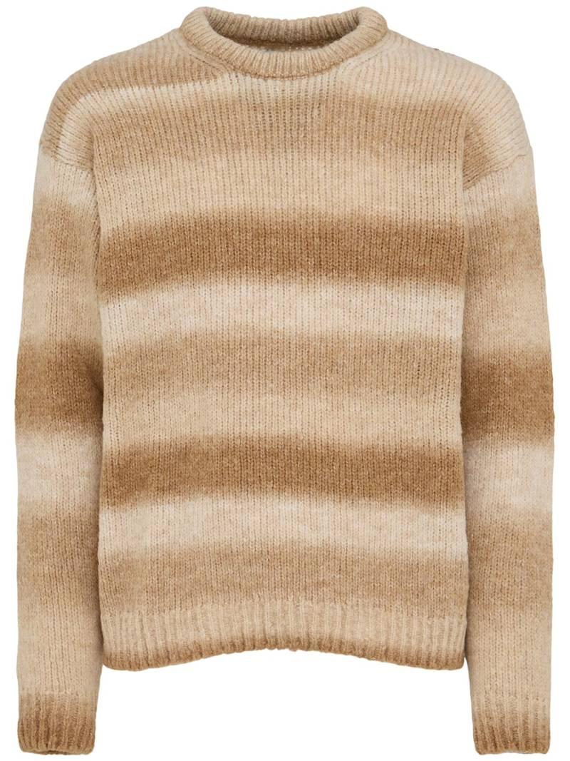 褪色条纹圆领毛衣 - 米黄色 - 男士 - Family First - 周身图案布局可能不同
