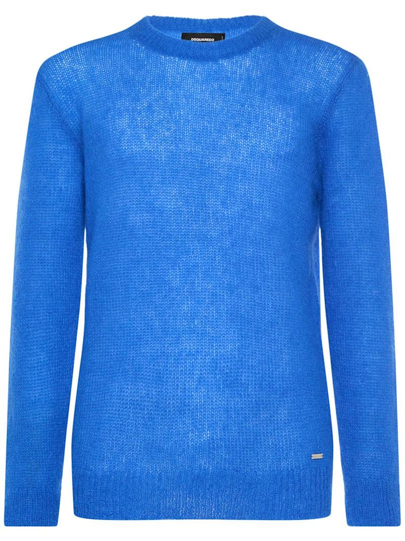马海毛混纺毛衣 - 亮蓝色 - 男士 - Dsquared2 - 罗纹领口、袖口和下摆