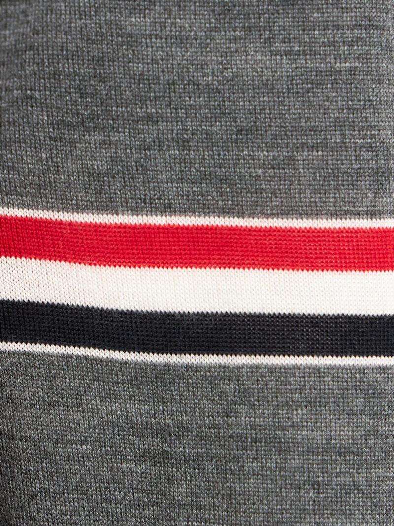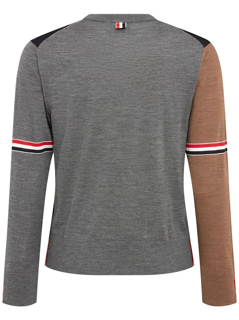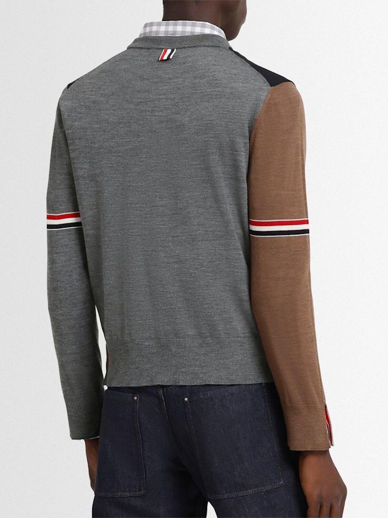 Fun Mix羊毛平纹针织上衣 - Navy/Grey/Brown - 男士 - Thom Browne - 圆领设计.