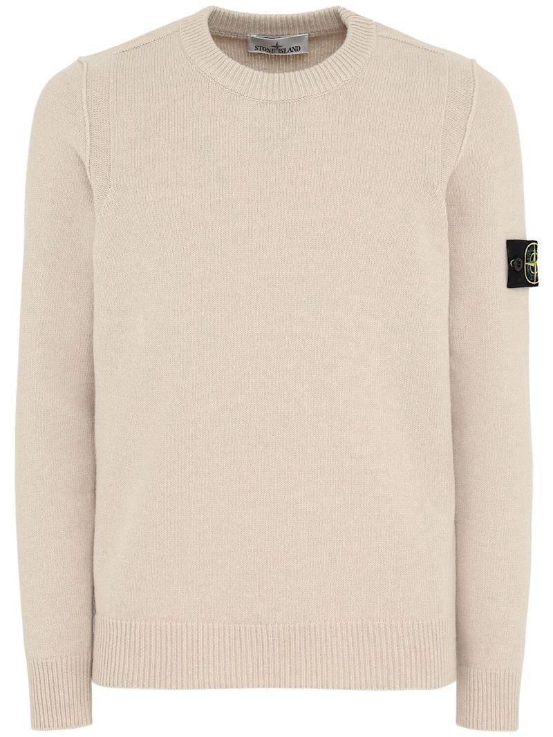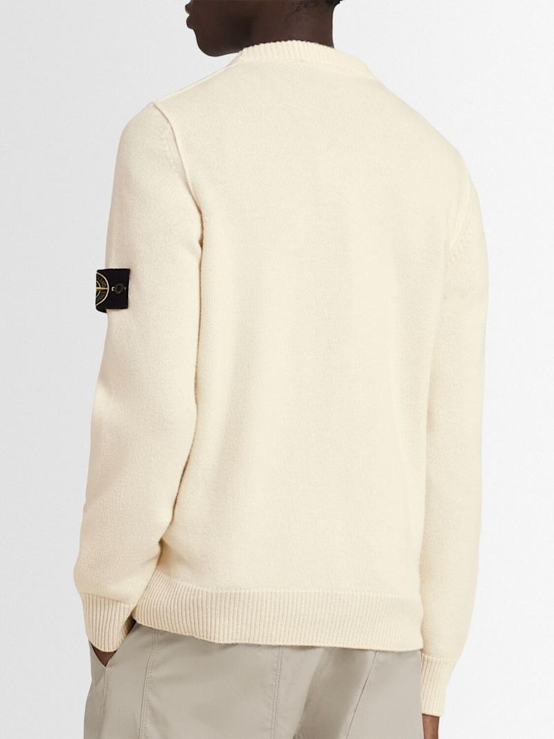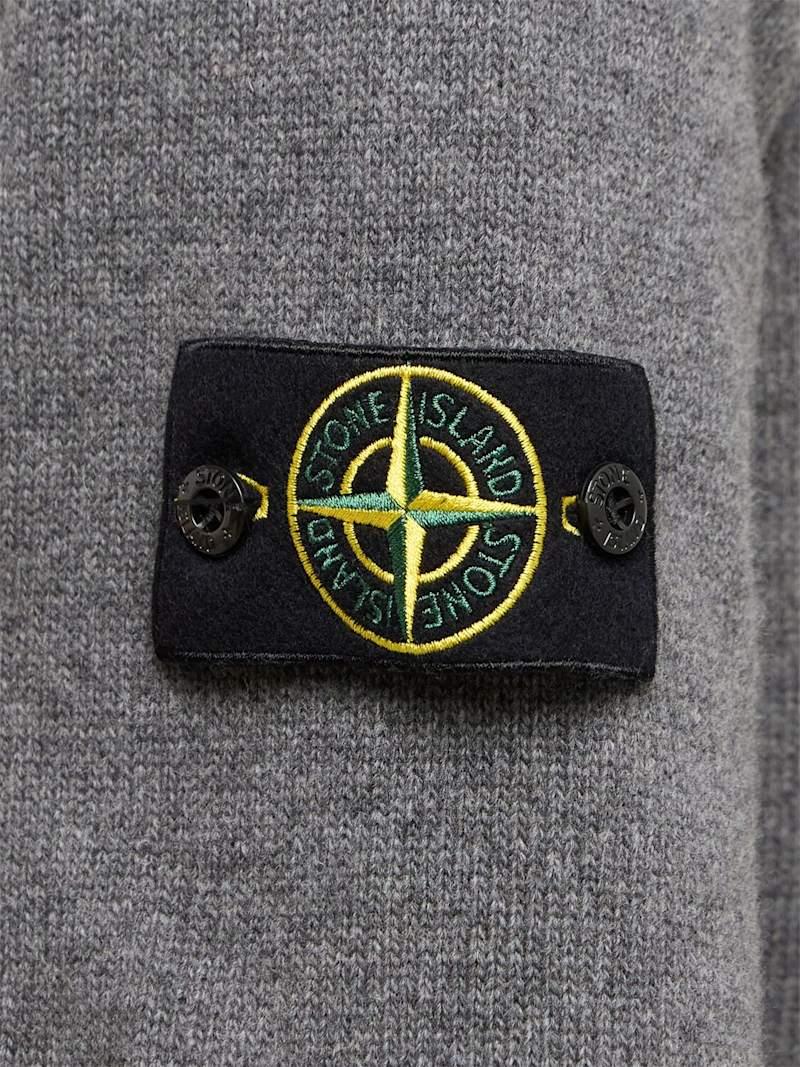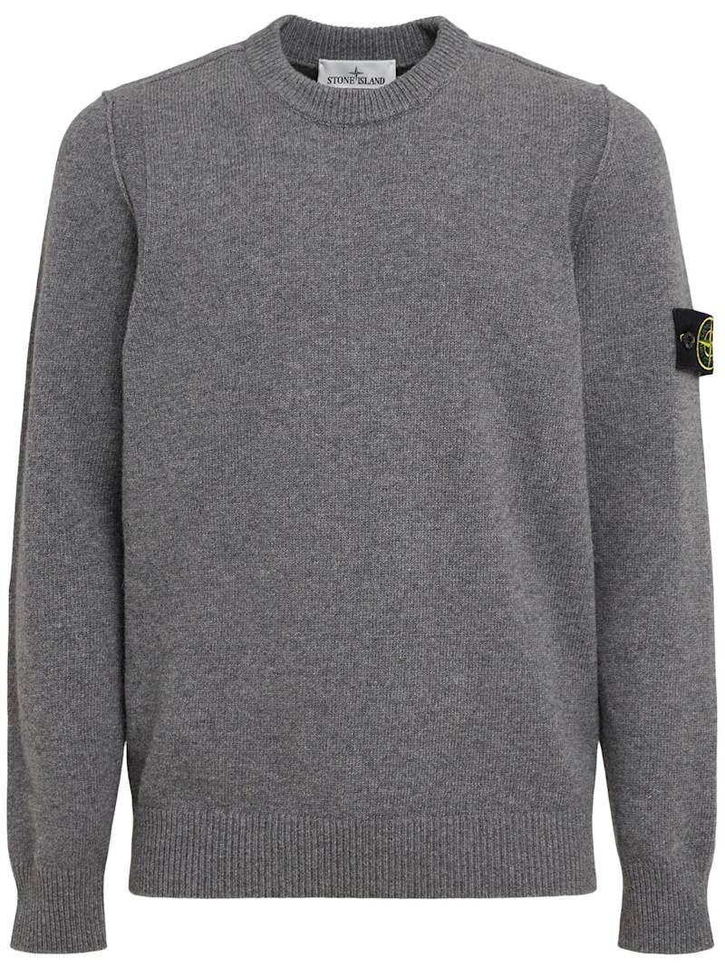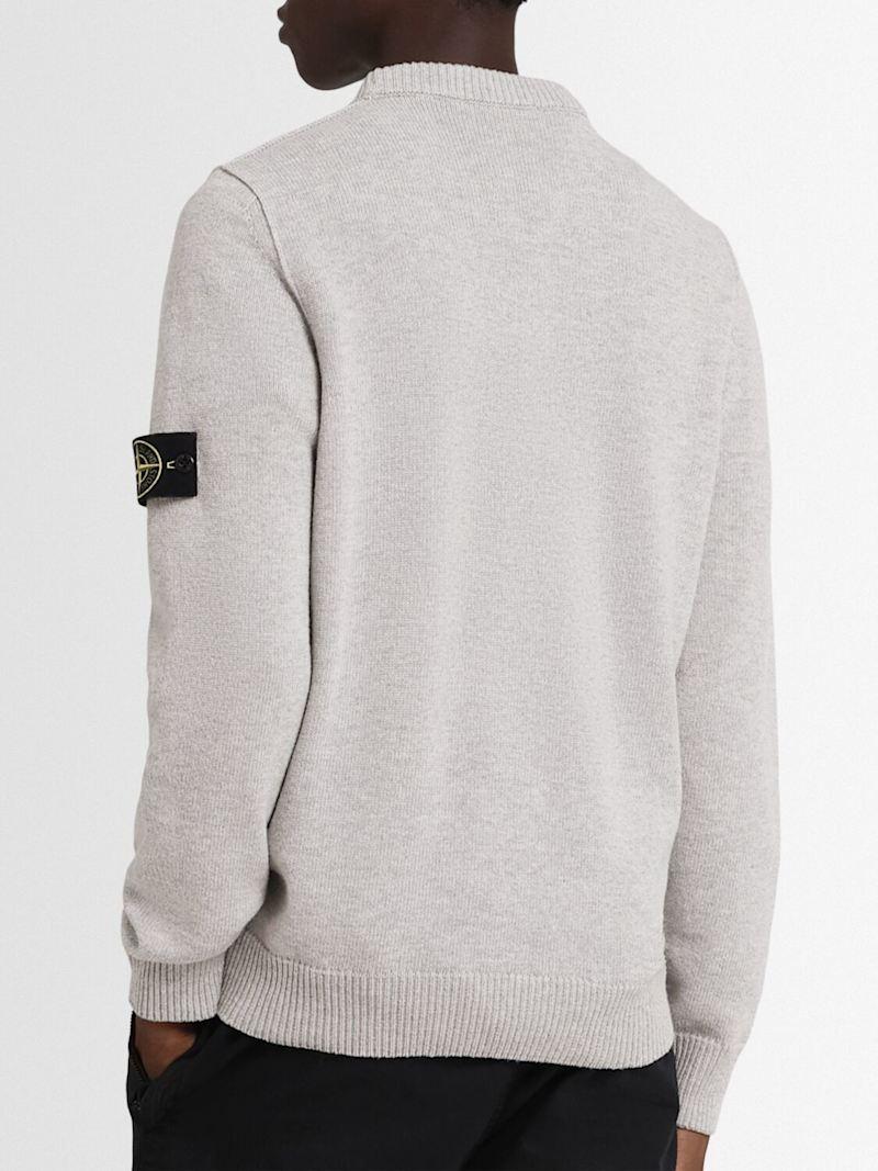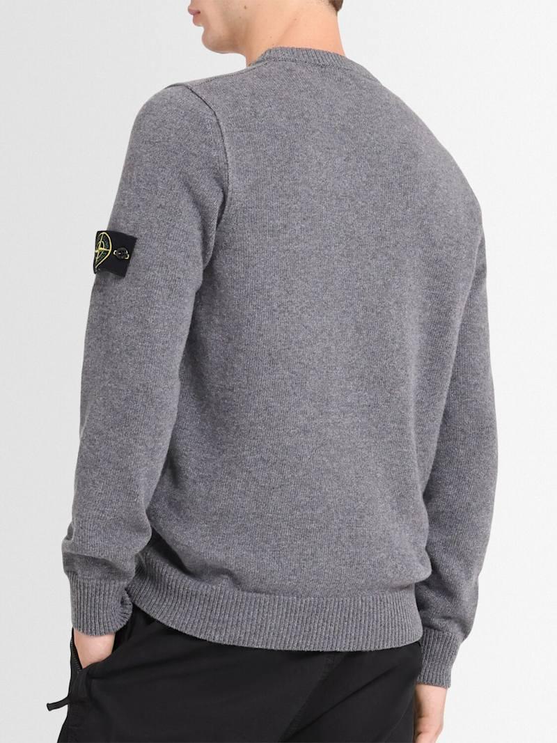 羊毛混纺圆领毛衣 - Cement Melange - 男士 - Stone Island - 罗纹边缘.
