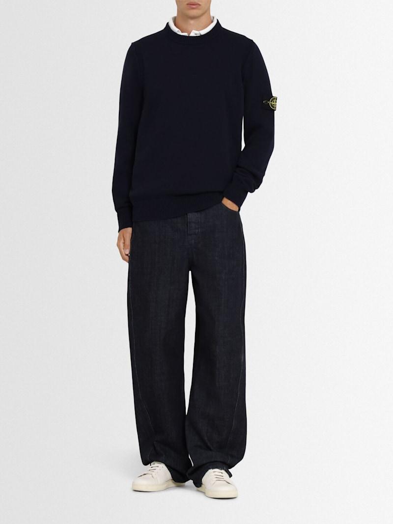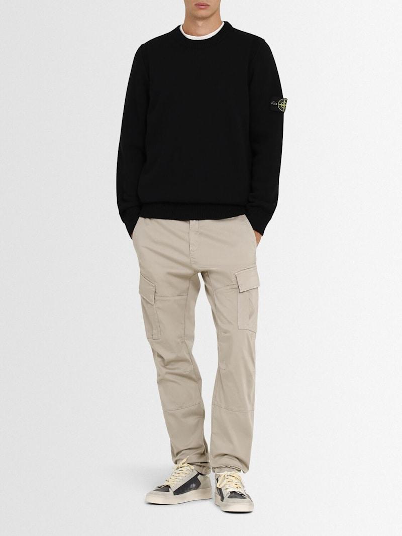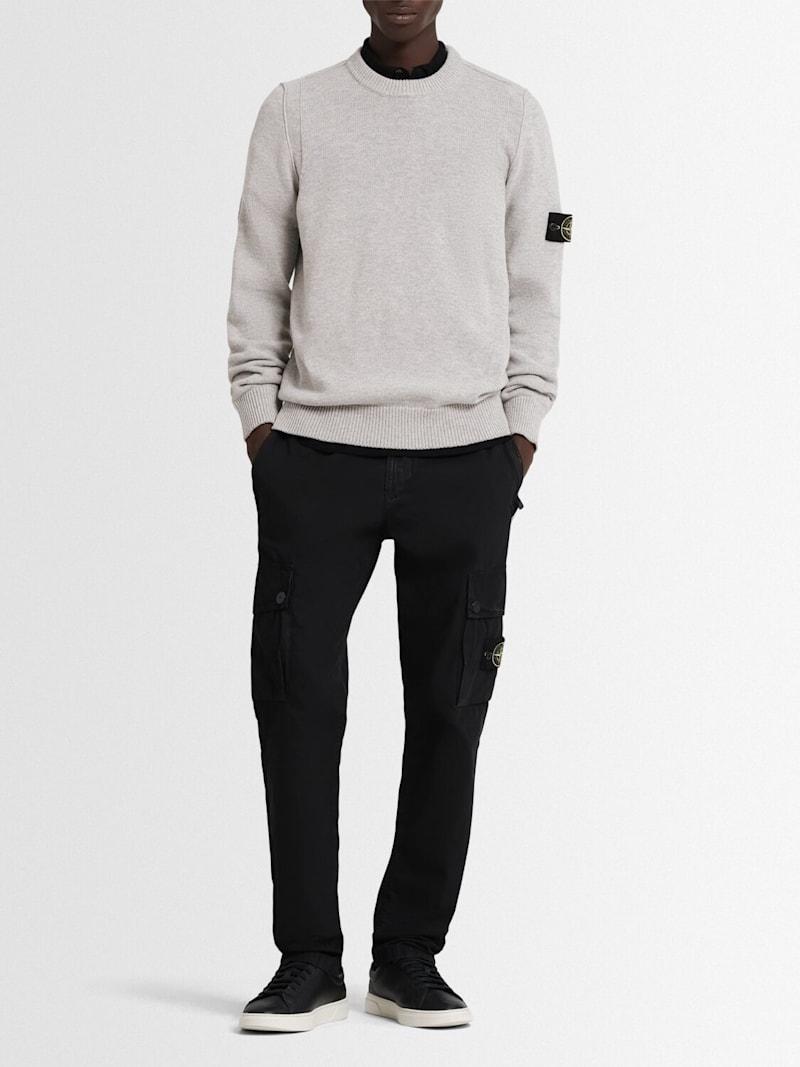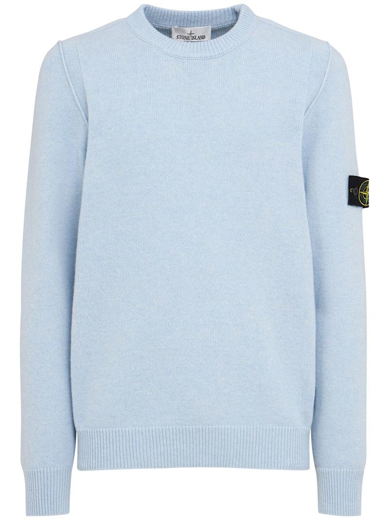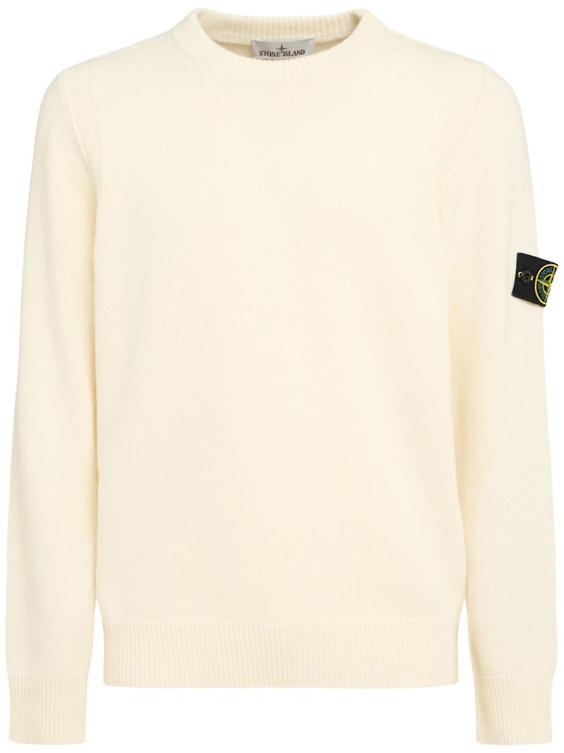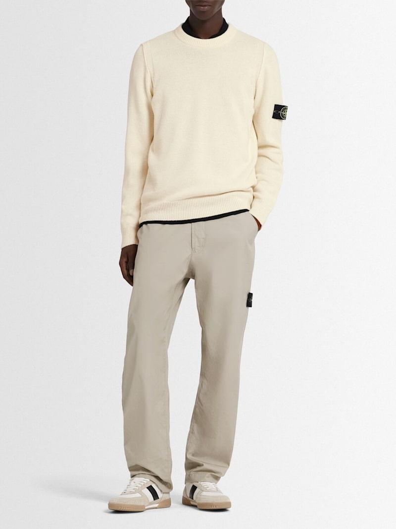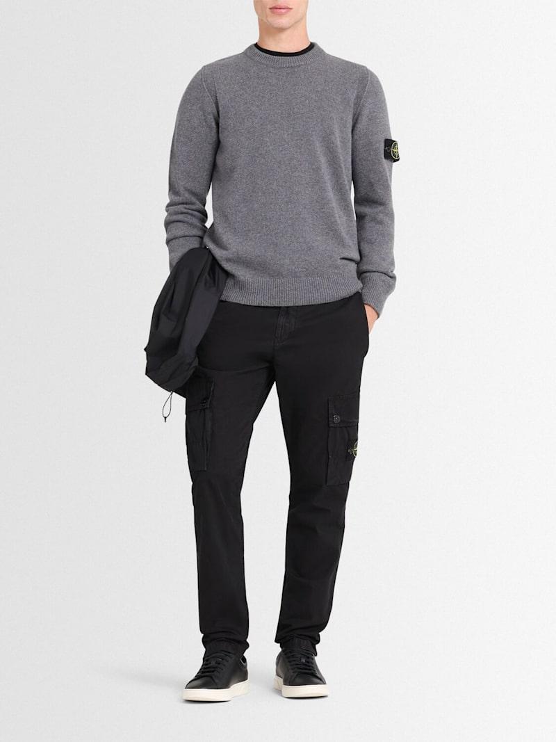 羊毛混纺圆领毛衣 - Cement Melange - 男士 - Stone Island - 罗纹边缘.