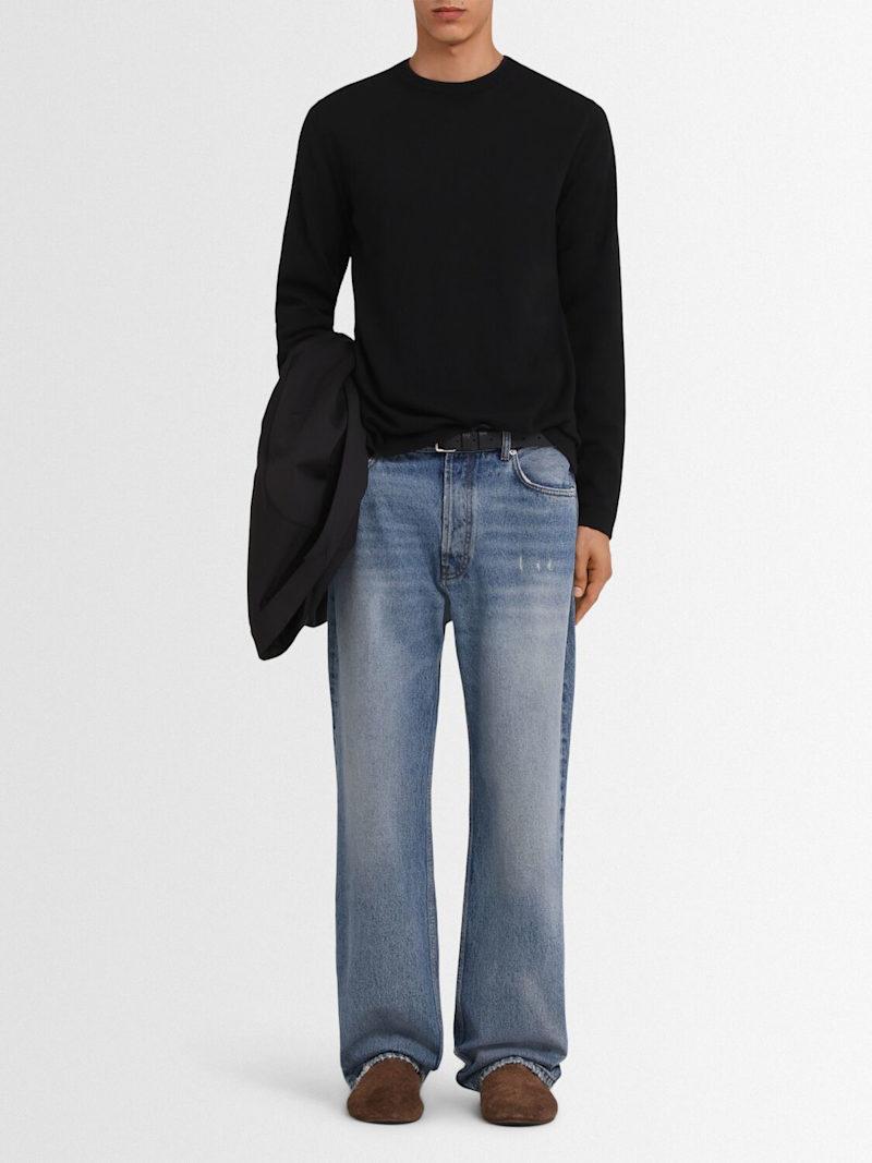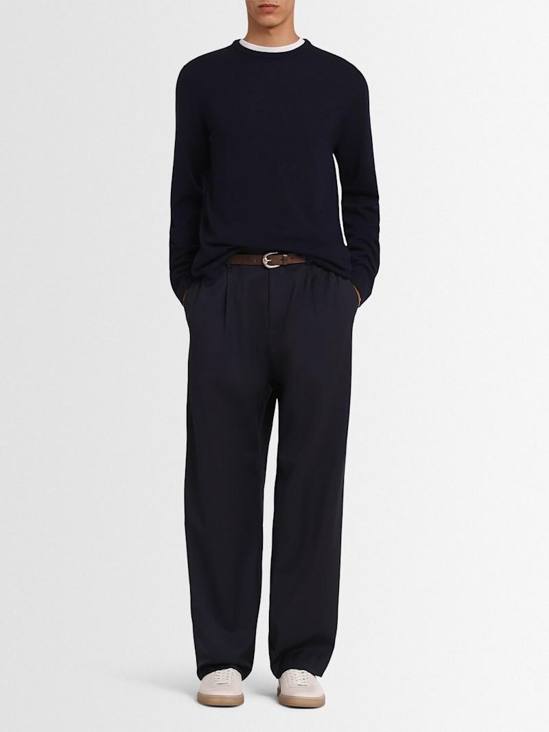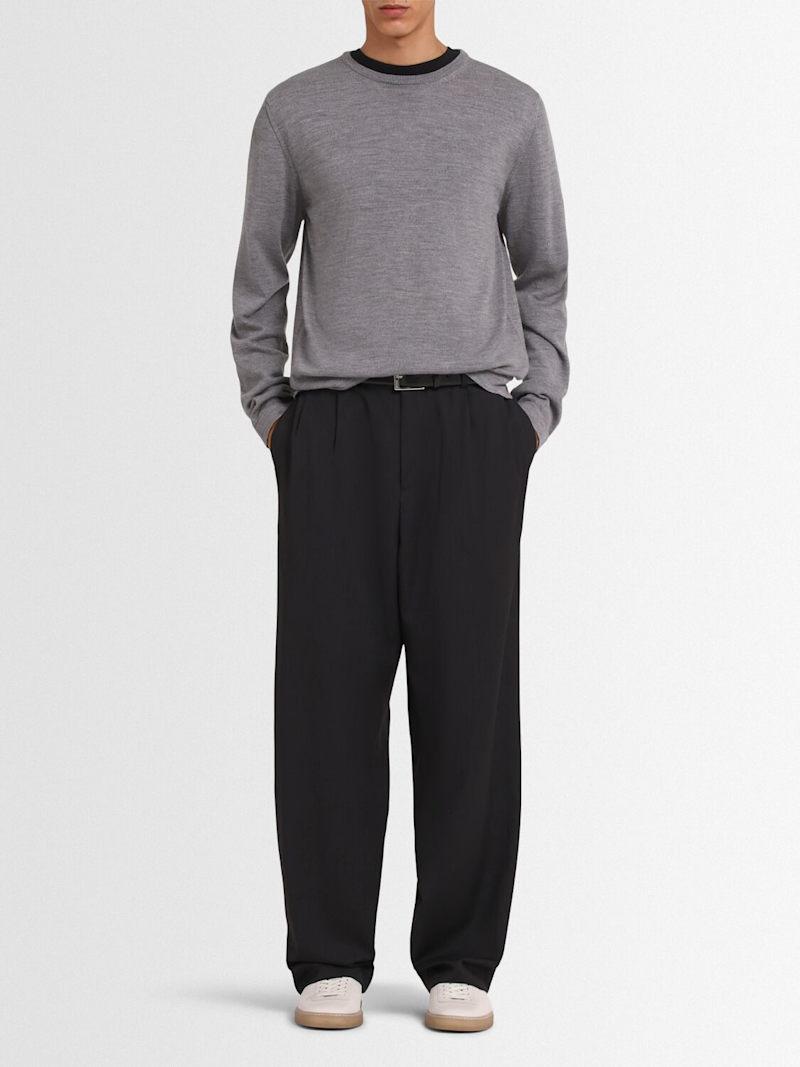 轻量羊毛针织圆领毛衣 - 灰色 - 男士 - The Core - 100% 意大利羊毛Tollegno纱线.
