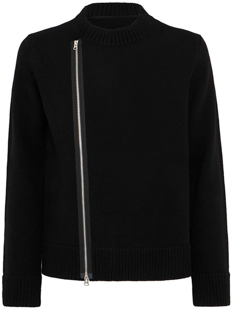 羊毛针织夹克 - 黑色 - 男士 - Sacai - 正面拉链开合.