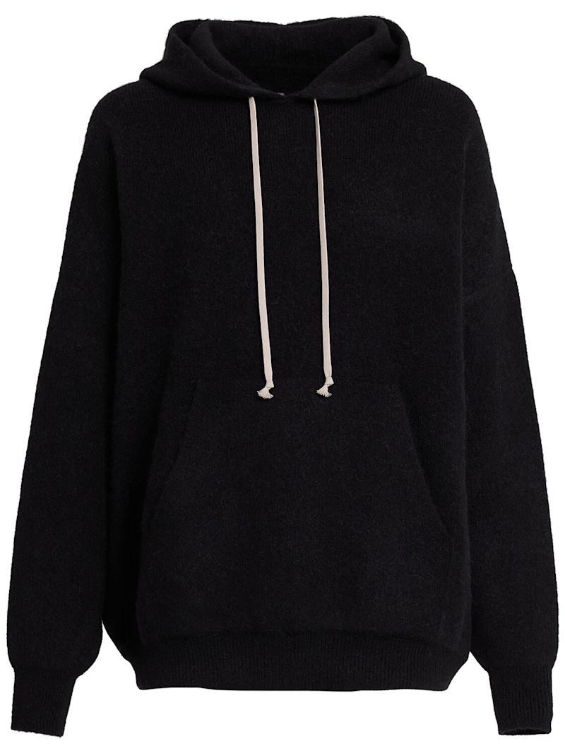 Hun羊驼毛混纺连帽卫衣 - 黑色 - 男士 - Rick Owens - 不可拆卸风帽配有抽绳.