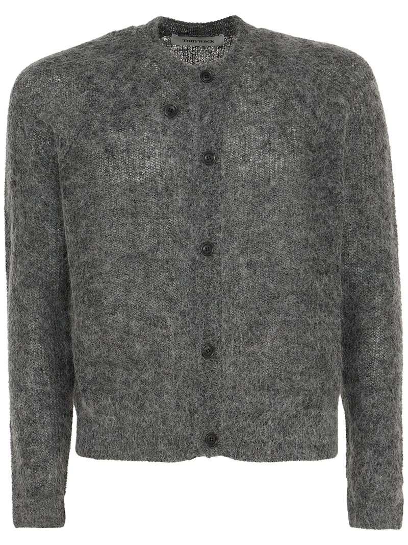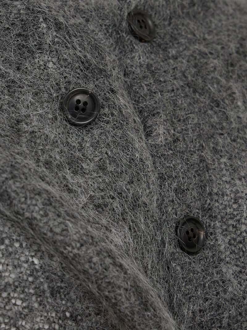羊毛混纺罗纹网眼开衫 - 麻灰色 - 男士 - Tonywack - 正面纽扣开合.