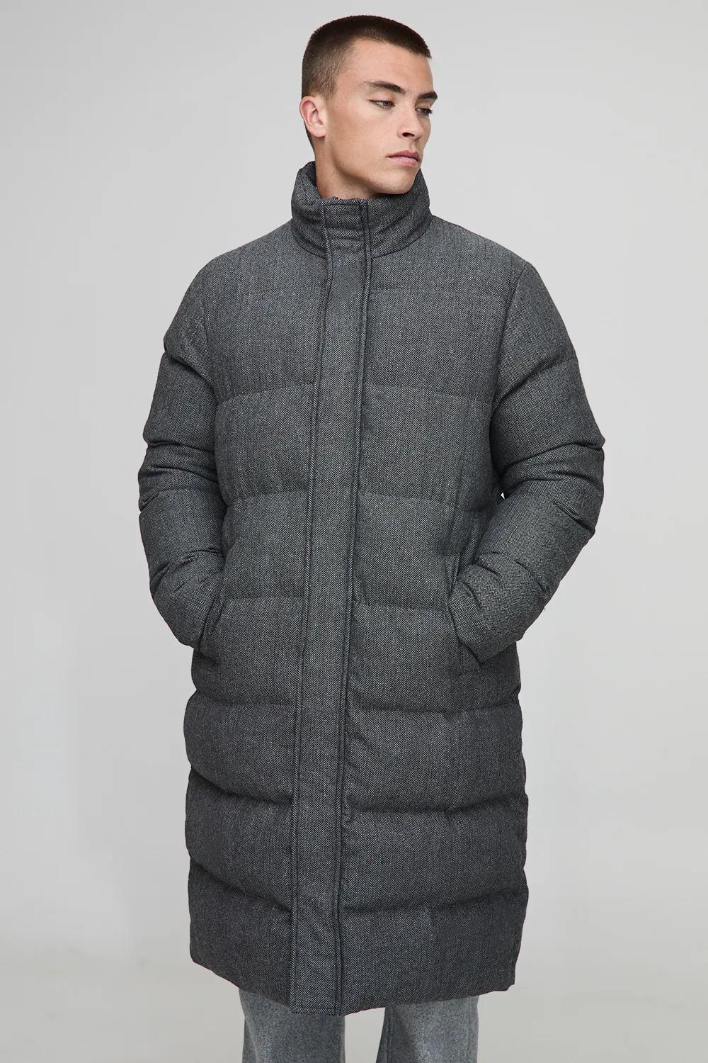 Jackets & Coats | Regular Fit Check Longline Puffer Jacket | boohooMAN