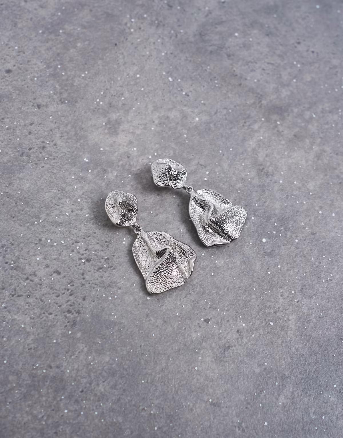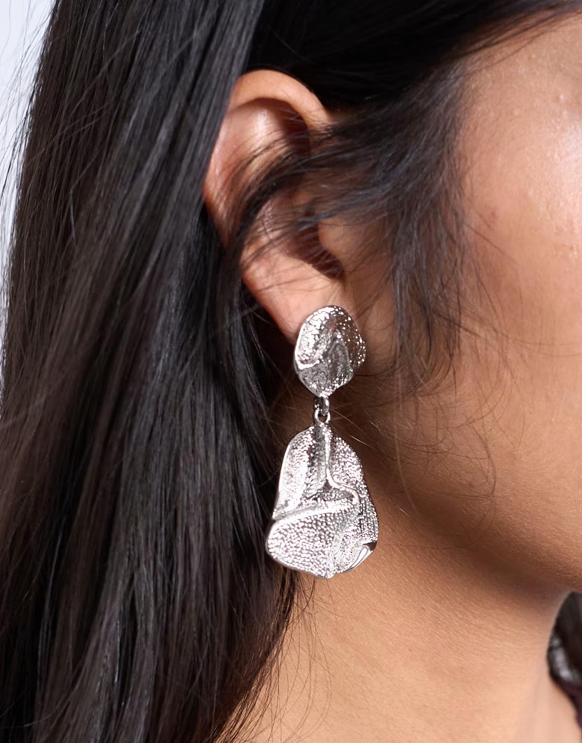 These Portia earrings feature a silver-tone finish. This drop style has a textured design and a secure fastening.