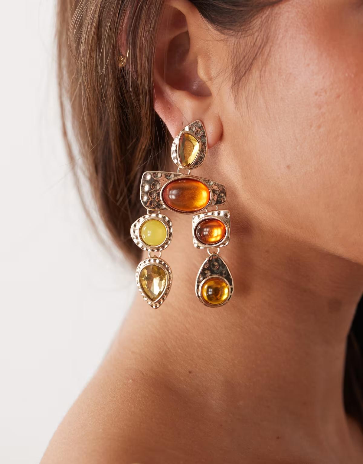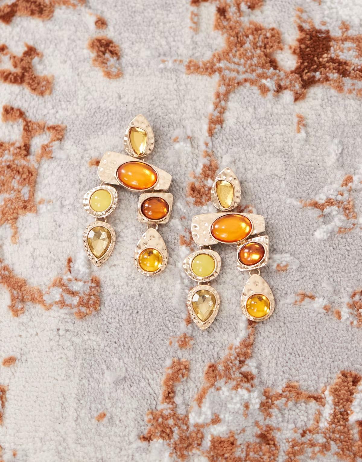 Petit Moments statement earrings in gold and burngundy stone