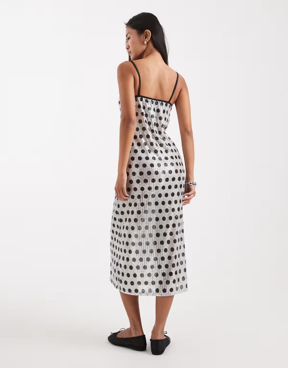 COLLUSION sheer sequin polka dot awkward length strappy dress
