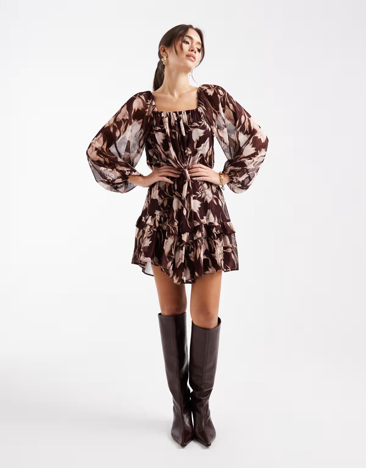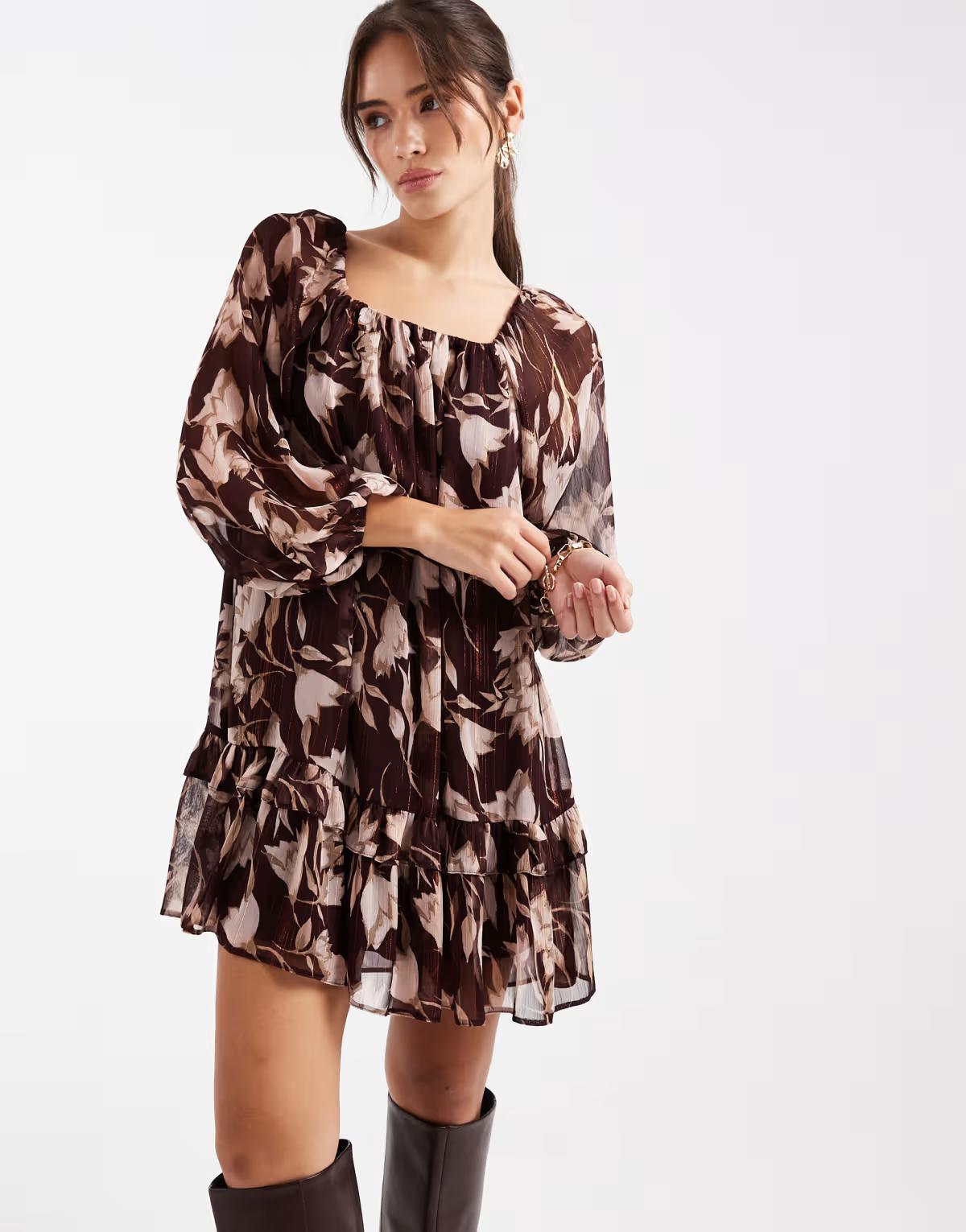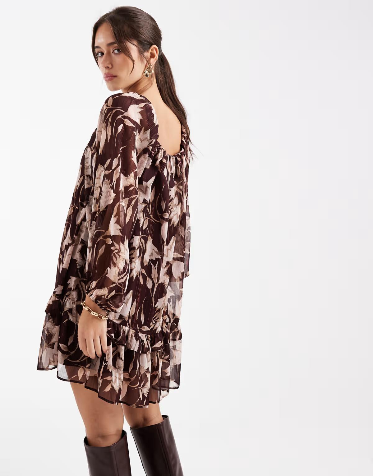 New Look floral smock mini dress in purple