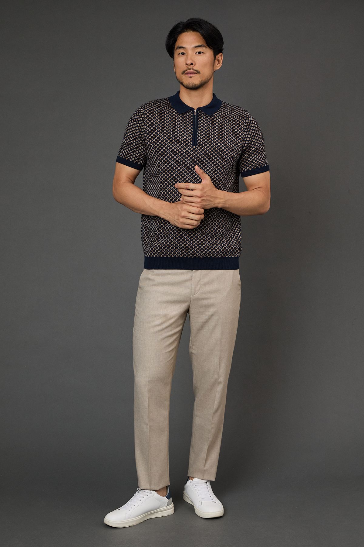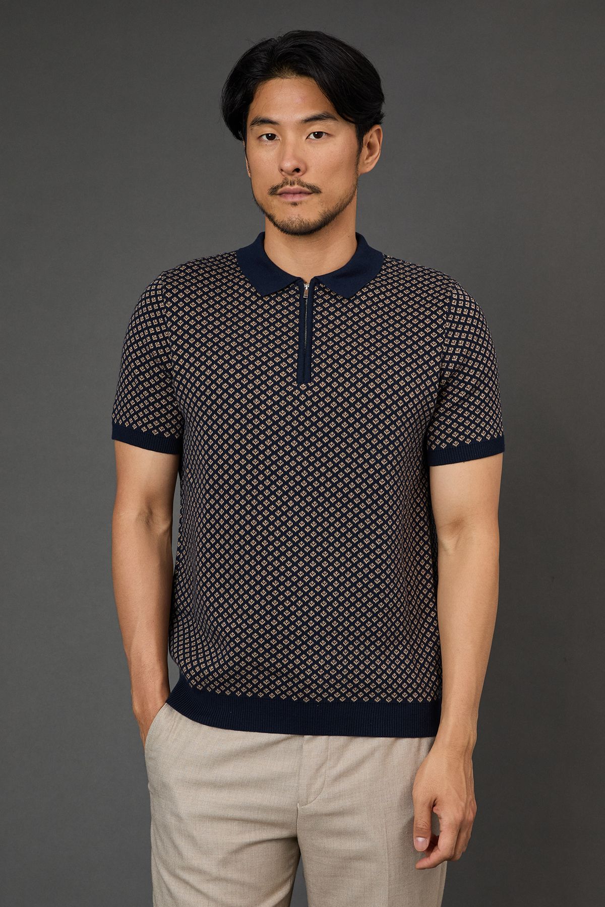 \u003cdiv\u003e\n \u003cul\u003e\n \u003cli\u003eShort sleeve polo with distinctive all-over geometric pattern\u003c/li\u003e\n \u003cli\u003eContrast solid collar and cuffs for a refined finish\u003c/li\u003e\n \u003cli\u003eQuarter-zip neckline adding contemporary detail\u003c/li\u003e\n \u003cli\u003eRibbed trims ensuring a comfortable, secure fit\u003c/li\u003e\n \u003cli\u003eVersatile regular fit suitable for various body types\u003c/li\u003e\n \u003c/ul\u003e\n \u003cp\u003eThis Burton patterned polo shirt combines classic style with modern detailing, perfect for the man who appreciates timeless fashion with subtle character. The quarter-zip neckline offers adjustable comfort while the geometric pattern throughout creates visual interest without overwhelming. Style it as shown with neutral chinos and white trainers for casual weekend outings or family barbecues. This versatile piece transitions effortlessly from daytime gatherings to evening drinks at your local, making it an essential for your casual wardrobe. The contrast trim detailing reflects Burton's attention to craftsmanship, whilst the comfortable fit ensures you'll reach for it time and again. Ideal for sporting events, pub lunches or relaxed garden parties where comfort meets style.\u003c/p\u003e\n\u003c/div\u003e