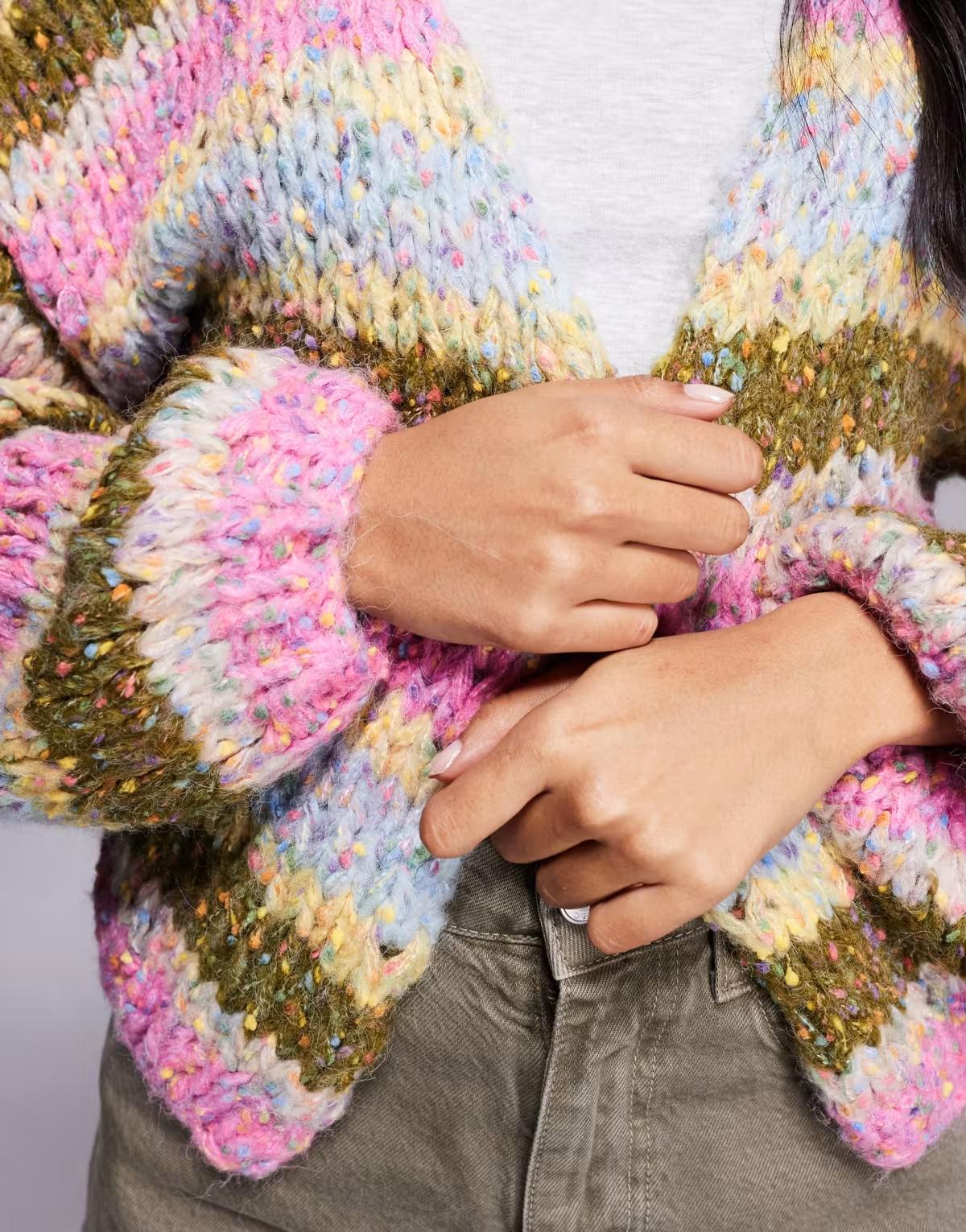 BrandSpecialising in hand-knitted knitwear – Scottish brand Kiwi & Co offers colourful clothing and accessories. Add some texture to your rotation with its fresh, fun collection of staples and statement pieces. You can expect faux-fur jackets as well as the brand’s viral bubble knit cardigans in multiple colourways from our Kiwi & Co at ASOS edit. Or shop its range of warm accessories like scarves, earmuffs, bucket hats and snoods.Size & FitModel's height: 170cm / 5' 7''Still unsure what size to get? Check out our size guide.