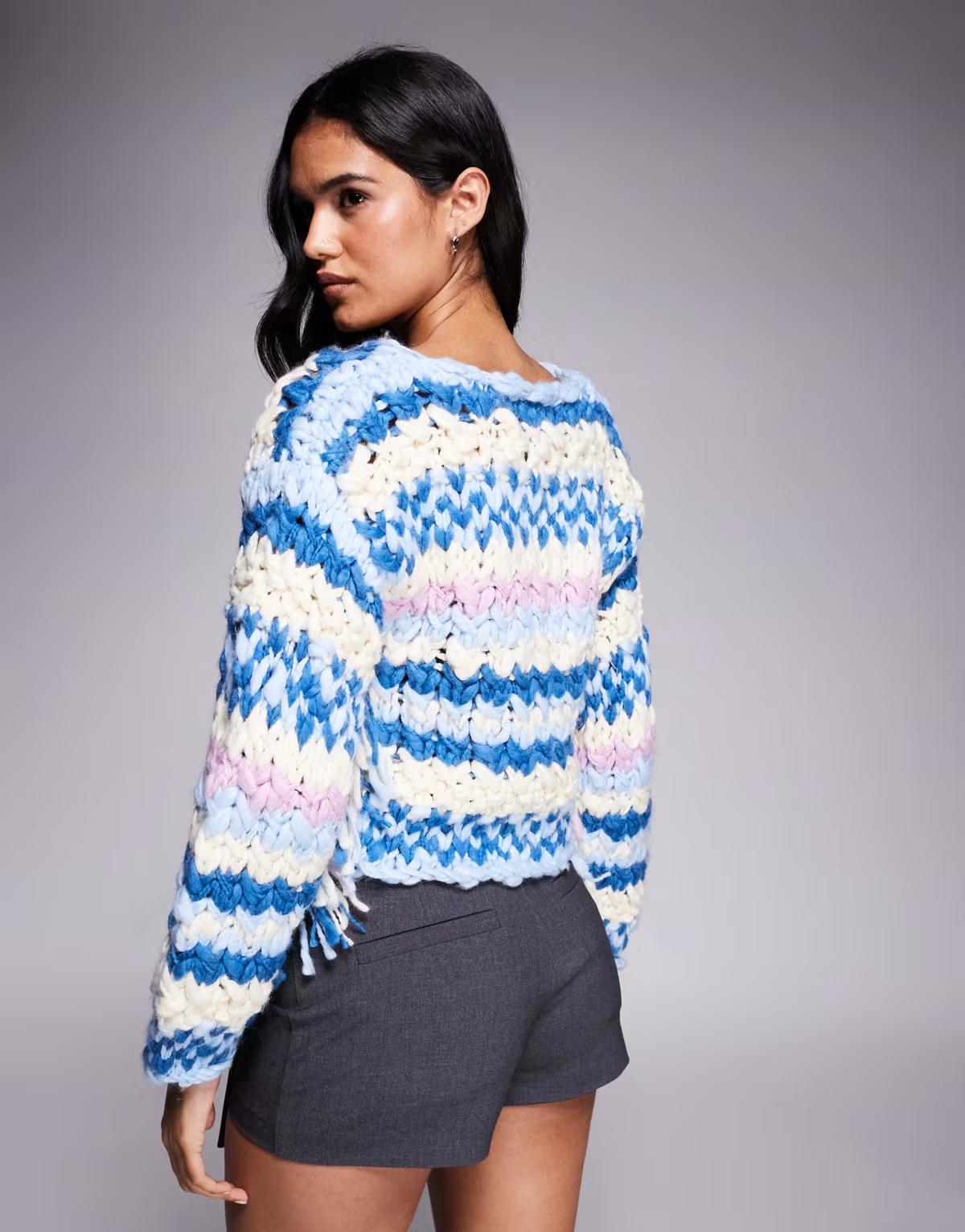 BrandSpecialising in hand-knitted knitwear – Scottish brand Kiwi & Co offers colourful clothing and accessories. Add some texture to your rotation with its fresh, fun collection of staples and statement pieces. You can expect faux-fur jackets as well as the brand’s viral bubble knit cardigans in multiple colourways from our Kiwi & Co at ASOS edit. Or shop its range of warm accessories like scarves, earmuffs, bucket hats and snoods.Size & FitModel's height: 170cm / 5' 7''Still unsure what size to get? Check out our size guide.