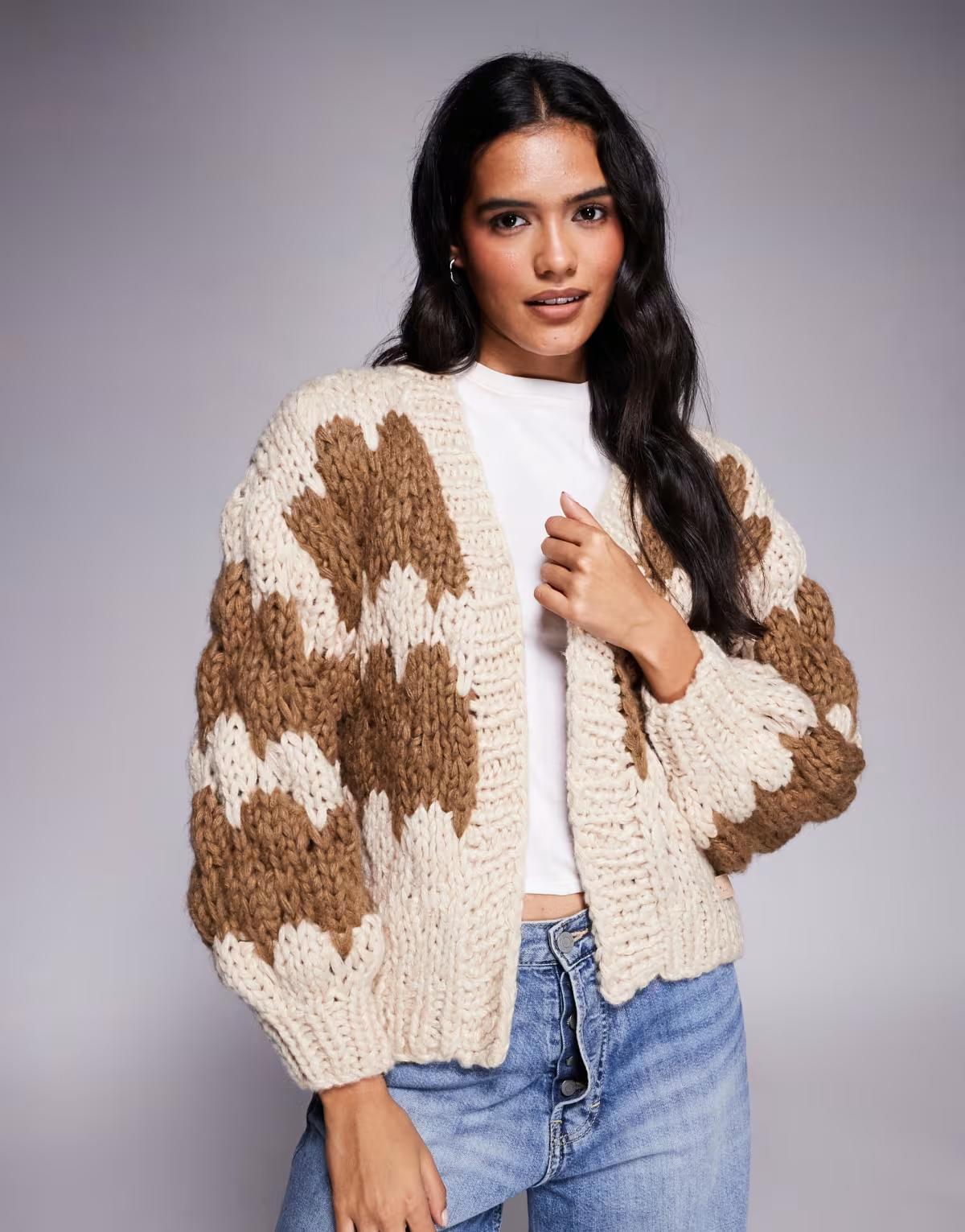 BrandSpecialising in hand-knitted knitwear – Scottish brand Kiwi & Co offers colourful clothing and accessories. Add some texture to your rotation with its fresh, fun collection of staples and statement pieces. You can expect faux-fur jackets as well as the brand’s viral bubble knit cardigans in multiple colourways from our Kiwi & Co at ASOS edit. Or shop its range of warm accessories like scarves, earmuffs, bucket hats and snoods.Size & FitModel's height: 170cm / 5' 7''Still unsure what size to get? Check out our size guide.