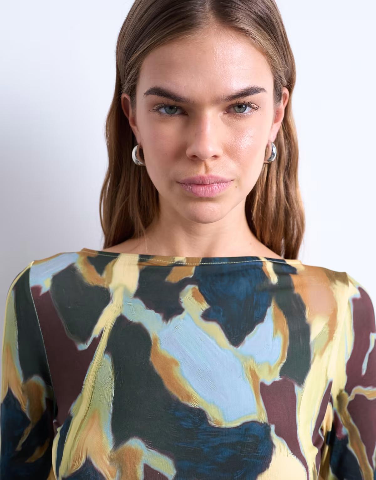This top is crafted from soft, stretchy jersey and features an abstract print. It has a round neck, long sleeves and is cut with a slim fit.
