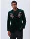 Green Regular Fit Snake Embroidered Velvet Blazer
