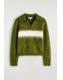 Dynamic textures renew classic knitwear with a modern appeal for Autumn Winter 2025. Rendered in a rich olive hue, this polo jumper is knitted with tactile mohair and merino wool and features a contrasting stripe that nods to sportswear codes. It's finished with an effortless open collar.\u0026nbsp;Slim fitThis product contains Responsible Mohair Standard TE-00047206 (RMS) mohair fibre from farms certified to animal welfare and land-management requirements\u0026nbsp;\u0026nbsp;Shell: 35% RMS Mohair, 35% Merino wool, 28% Recycled polyester, 2% Elastane. Excluding trims / Dry clean\u0026nbsp;Back length of size S is 55cm / Model wears a size S