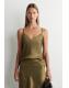 Crafted from luxuriously soft satin, this refined cami top is striking in its simplicity. It's designed with a laser-cut V-neckline, slim shoulder straps and delicate bias-cut chiffon trims. Style it with the matching skirt for a tonal look.\u0026nbsp;Regular fitRecycled polyester is polyester made from PET bottles or end-of-life textile waste. The PET bottles or textile waste is mechanically recycled and processed into new yarn\u0026nbsp;Shell: 100% Recycled polyester. Excluding trims / Machine wash\u0026nbsp;Back length of size EU 36 is 38.7cm / Model wears a size EU 36