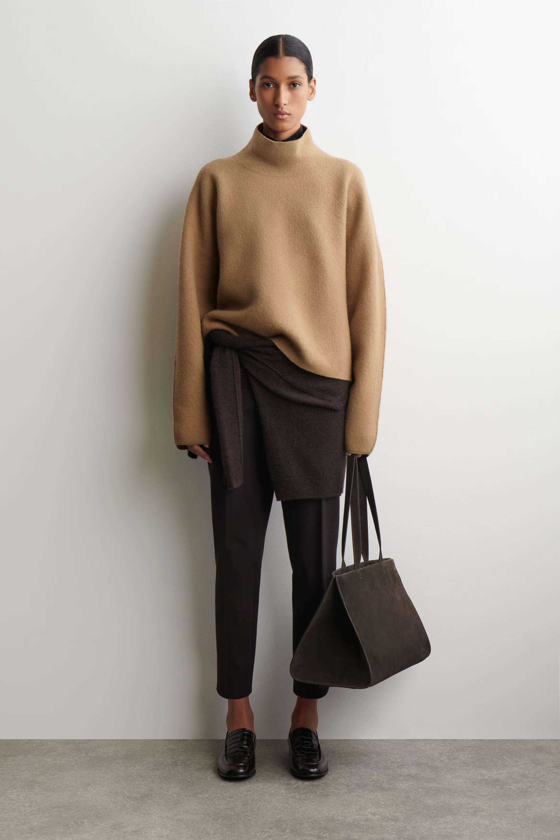 Refined silhouettes and luxuriously tactile yarns define the COS knitwear collection. Rendered in a saturated red tone, this funnel-neck jumper is made from premium merino wool that's boiled for texture and designed in a rounded shape with an overlapping seam at the back.\u0026nbsp;Regular fitThis product contains Responsible Wool Standard TE-00047206 (RWS) wool fibre from farms certified to animal welfare and land-management requirements\u0026nbsp;Shell: 100% Merino wool. Excluding trims / Dry clean\u0026nbsp;Back length of size S is 58cm / Model wears a size S