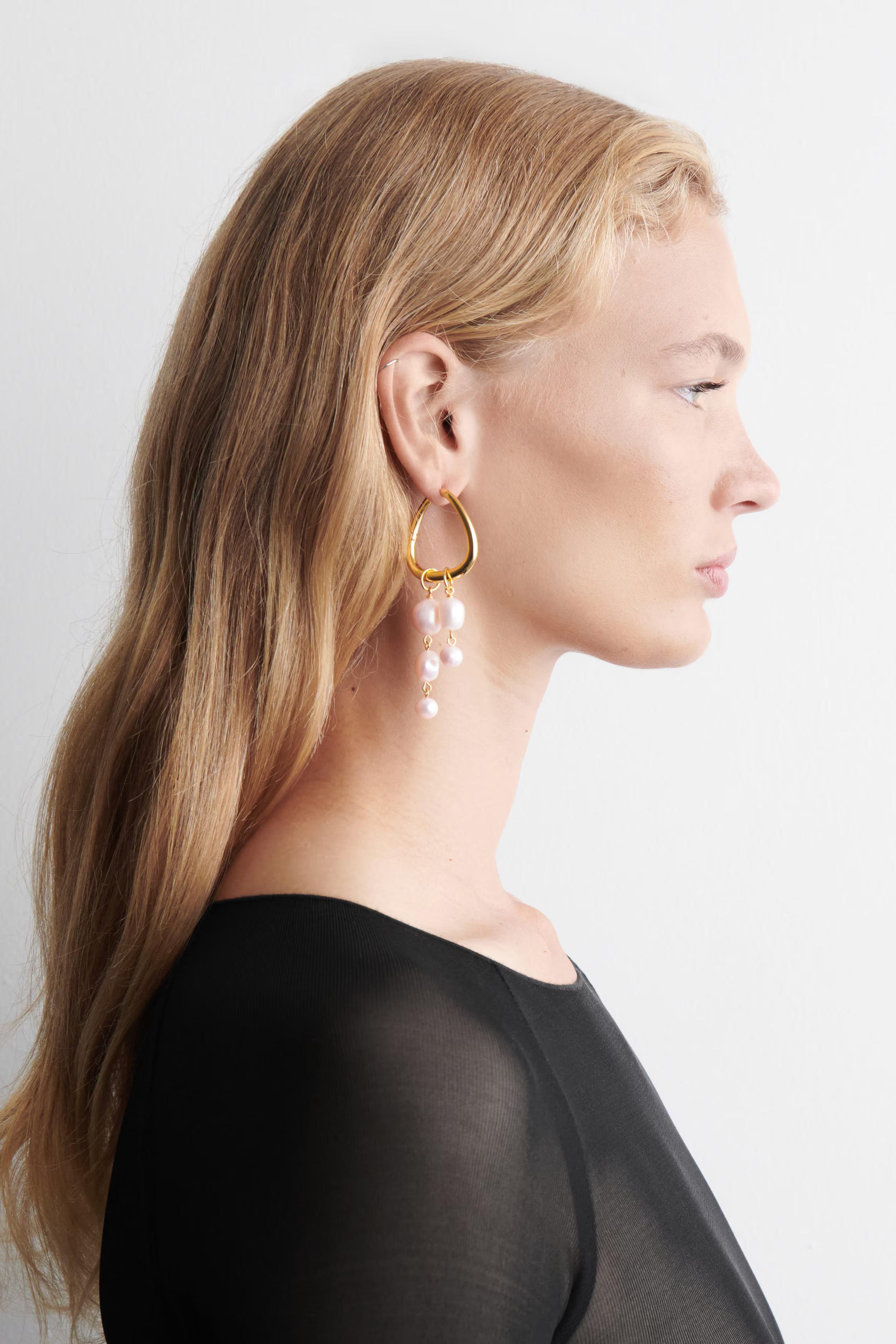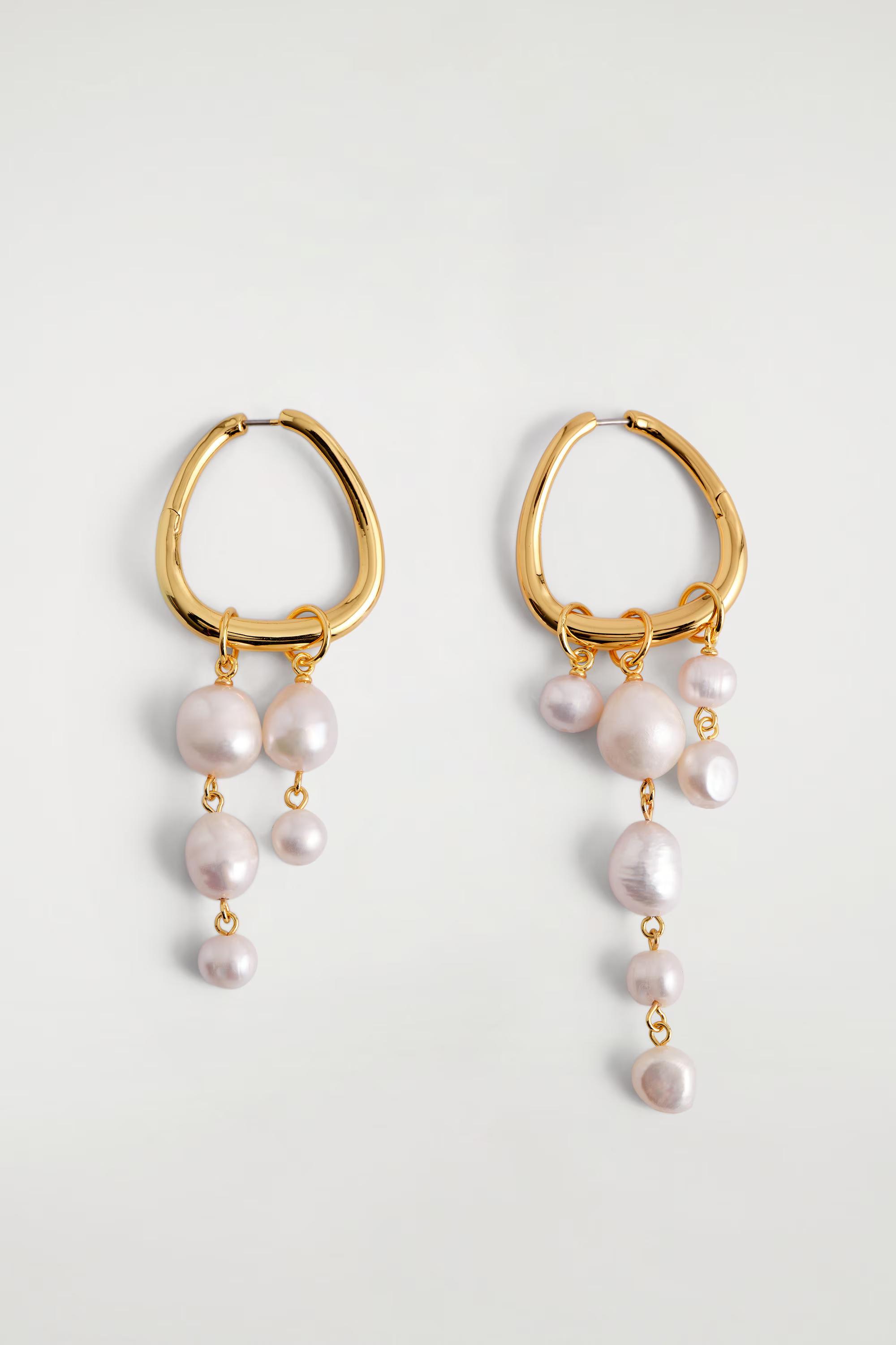 Sculptural jewellery has the transformative power to elevate any outfit. Intentionally mismatched, these striking earrings are crafted in an artfully twisted shape with cascading freshwater pearls falling from each piece.\u0026nbsp;Hinged closureBrass is a versatile material that can be recycled numerous times without losing any of its properties\u0026nbsp;Shell: 60% Post-consumer recycled brass, 40% Freshwater pearl. Plating: 100% Gold. Excluding trims