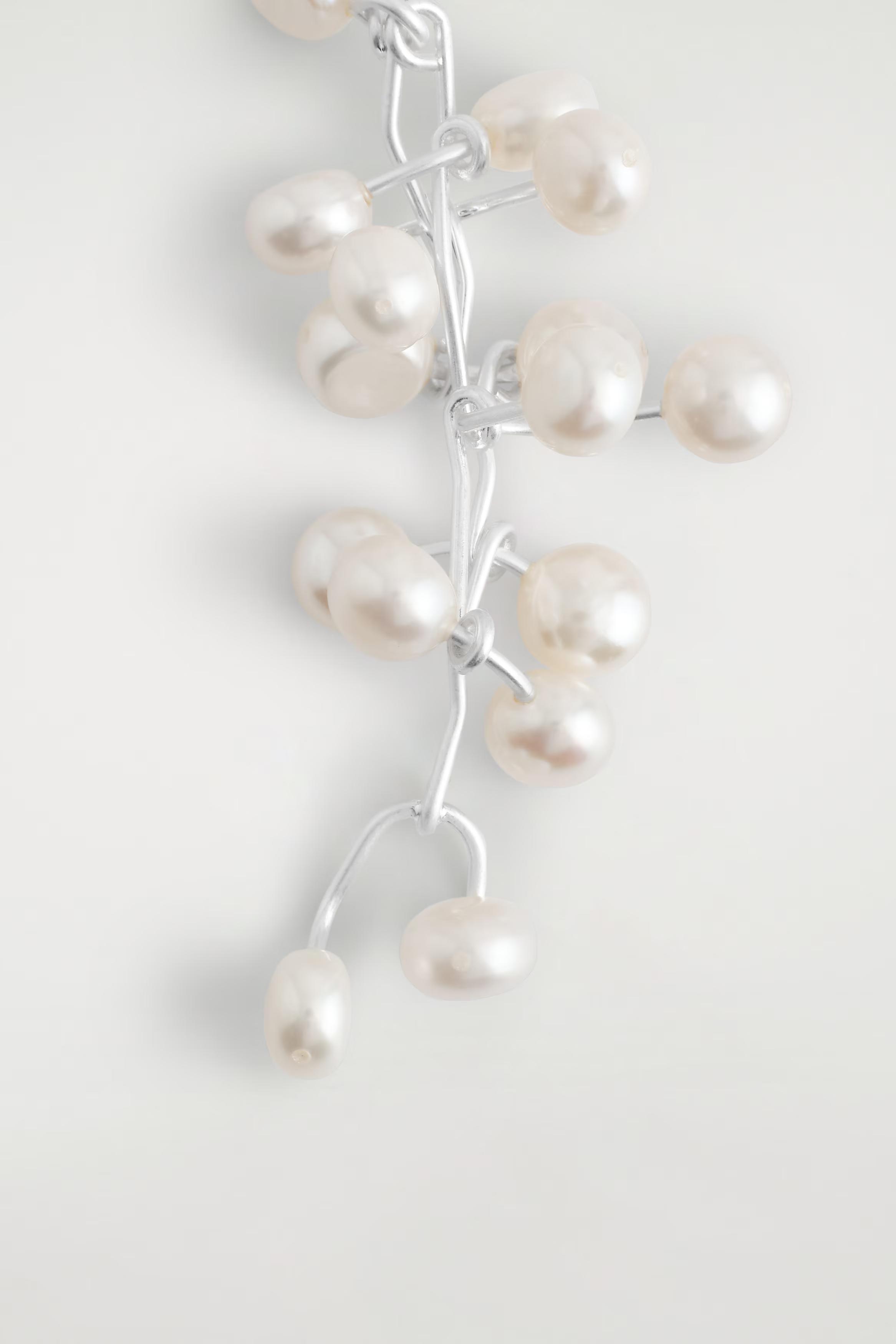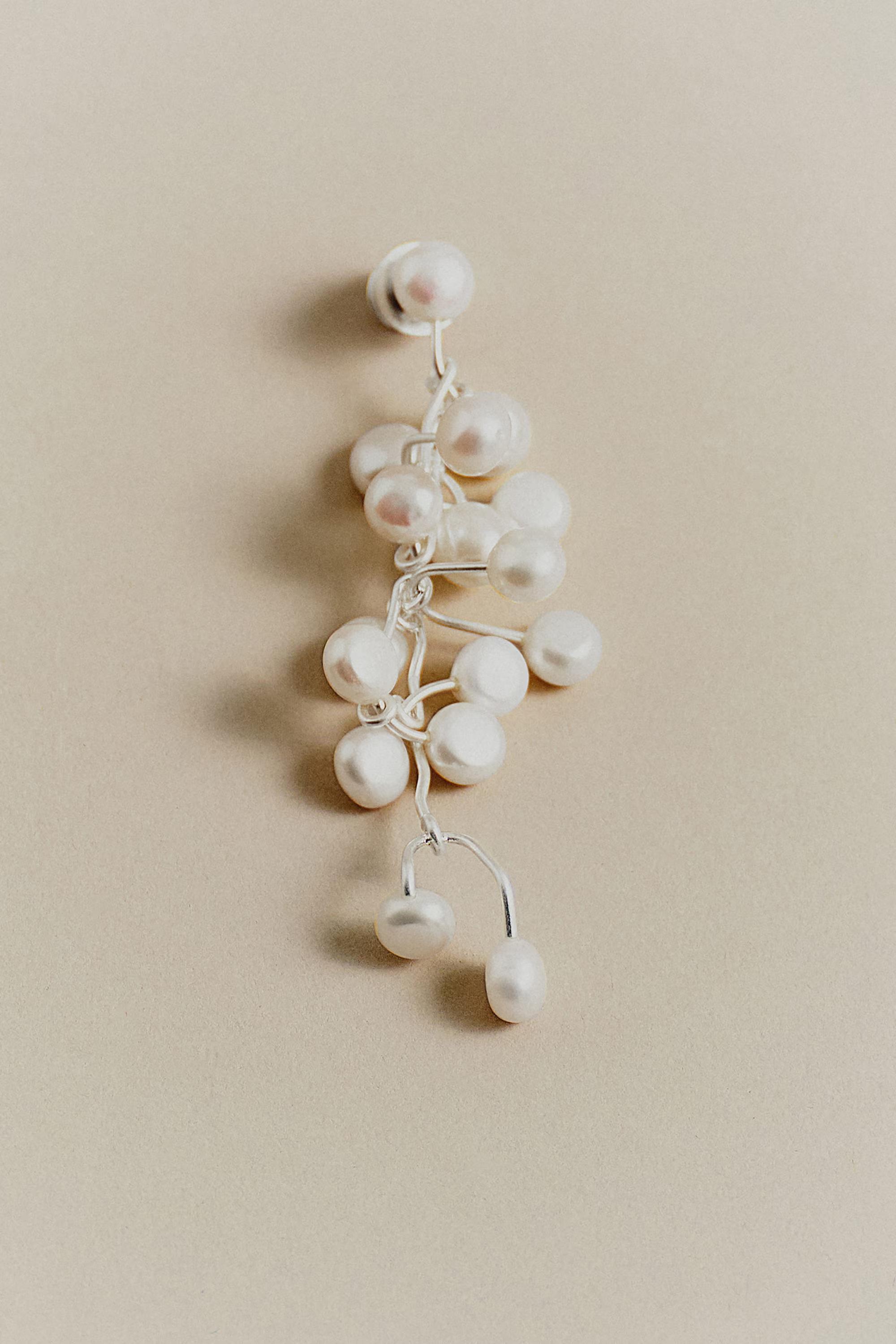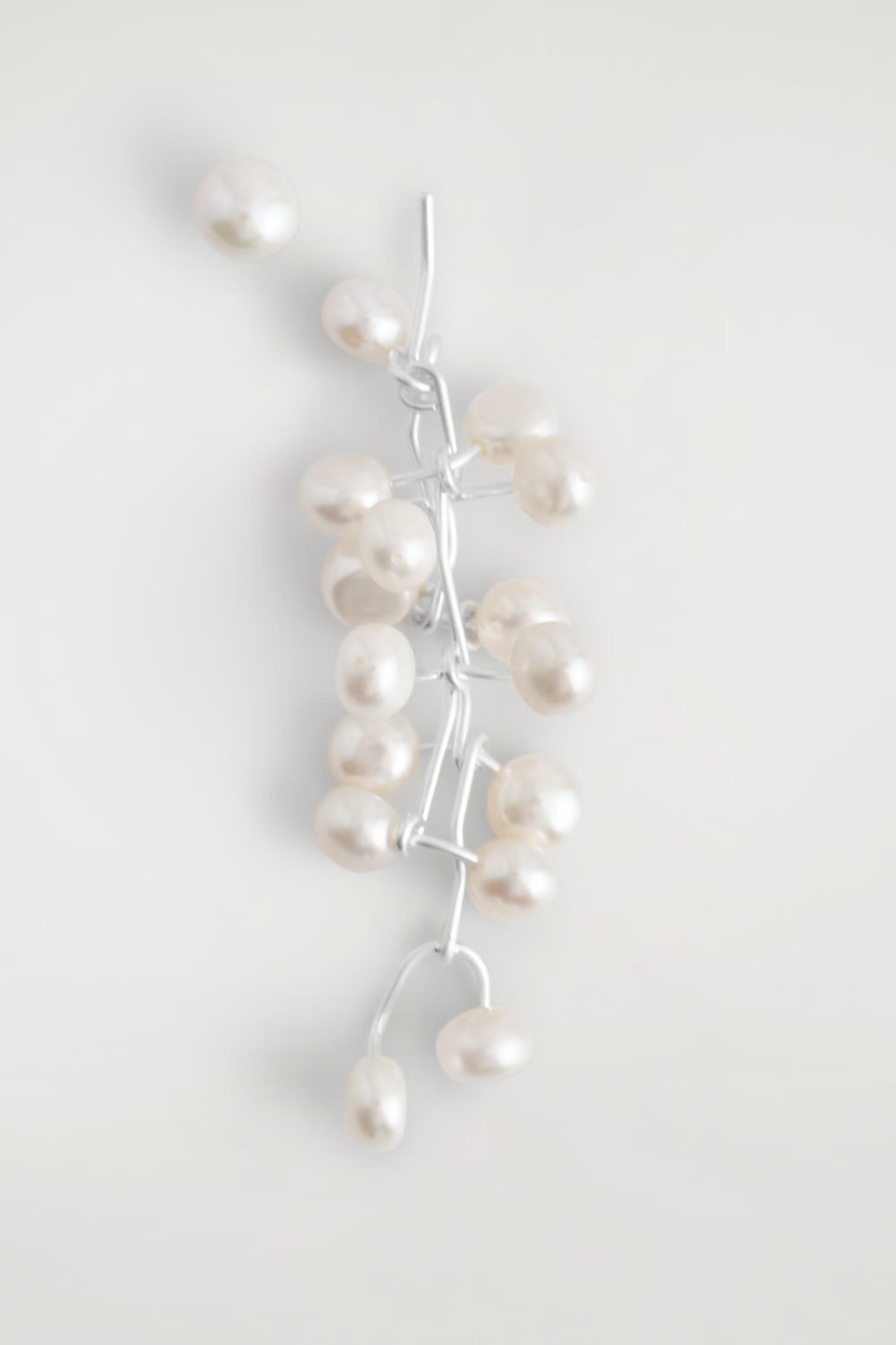 Talking-point accessories lend personality to even the most pared-back looks. Embellished with freshwater pearls, one earring emulates floral buds cascading from silver-plated wire stems, while the other is a simple pearl stud. Style them with your hair pulled back.\u0026nbsp;\u0026nbsp;Push-back closureBrass is a versatile material that can be recycled numerous times without losing any of its properties\u0026nbsp;\u0026nbsp;Shell: 75% Freshwater pearl, 25% Post-consumer recycled brass. Plating: 100% Silver. Excluding trims