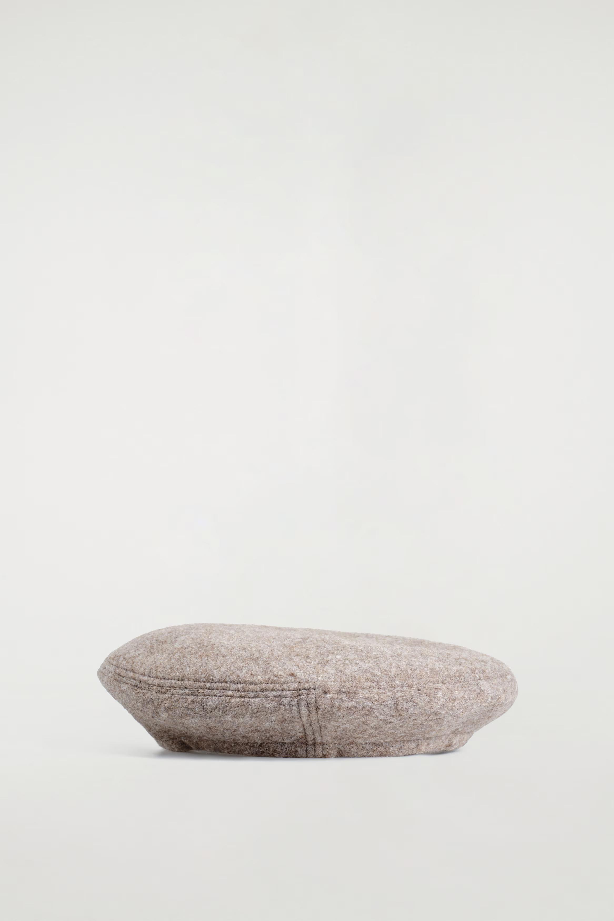 Rendered in a classic m\u0026eacute;lange-beige tone, this refined beret is made from a tactile cotton and wool blend and threaded with a drawstring that tempers the silhouette. Style it with a chunky knit.\u0026nbsp;Recycled polyester is polyester made from PET bottles or end-of-life textile waste. The PET bottles or textile waste is mechanically recycled and processed into new yarn\u0026nbsp;Shell: 42% Recycled polyester, 39% Cotton, 19% RWS Wool. Excluding trims
