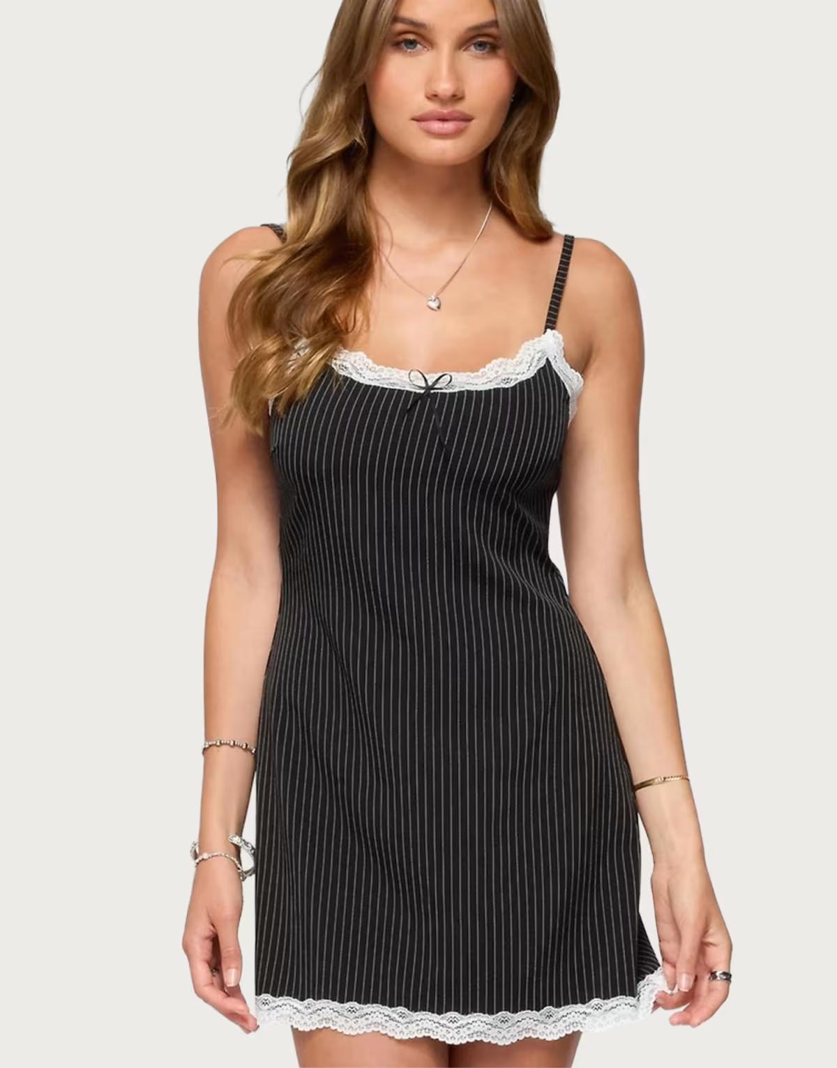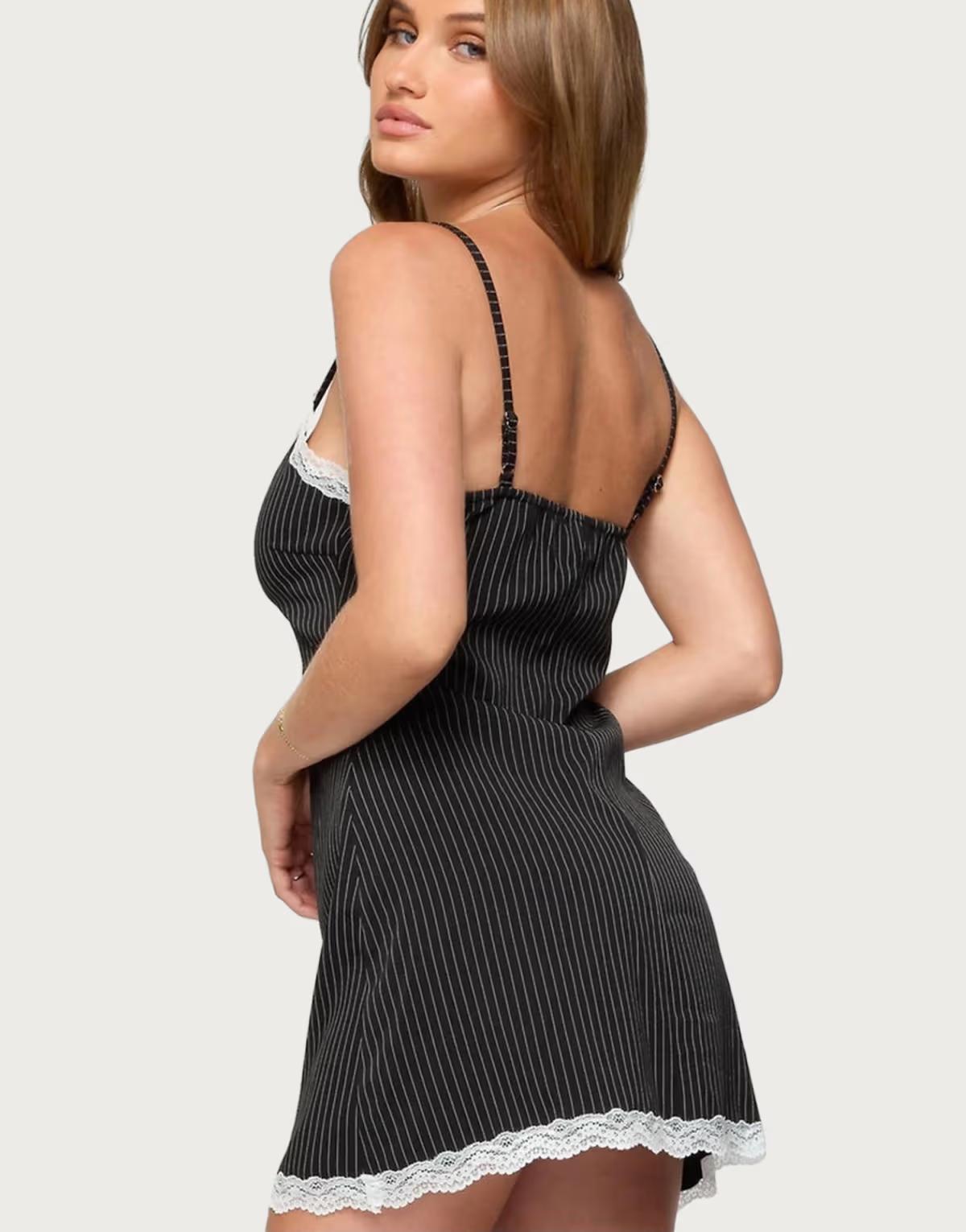 Edikted Liel contrast lace pinstripe mini dress in black and white