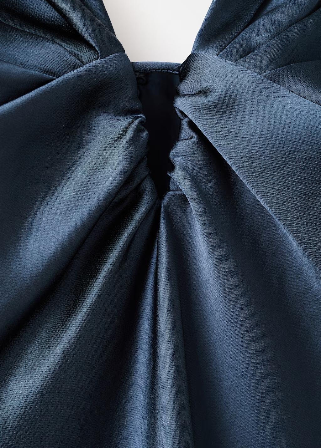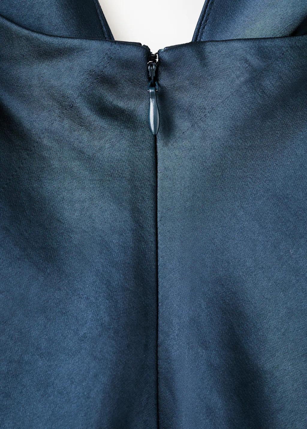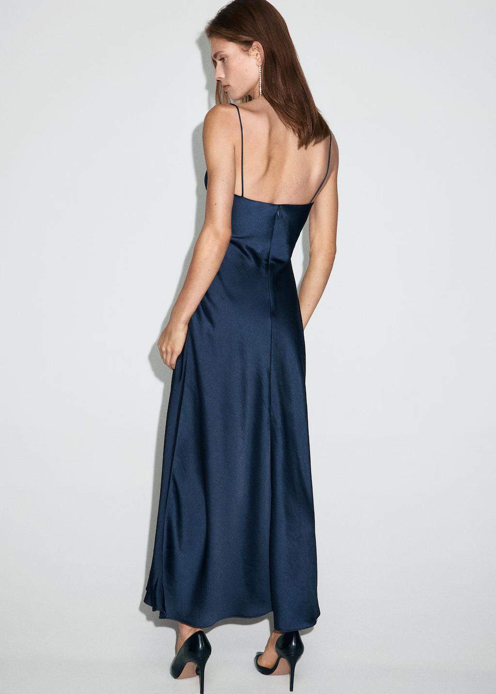 Tejido satinado. Diseño largo. Diseño recto. Escote de pico. Sin mangas. Tirantes finos. Detalle fruncido en el pecho. Cierre de cremallera en la parte posterior. Esta prenda pertenece a nuestra colección de fiesta y evento, diseñada para elevar tus looks en ocasiones especiales. El color azul es exclusivo online