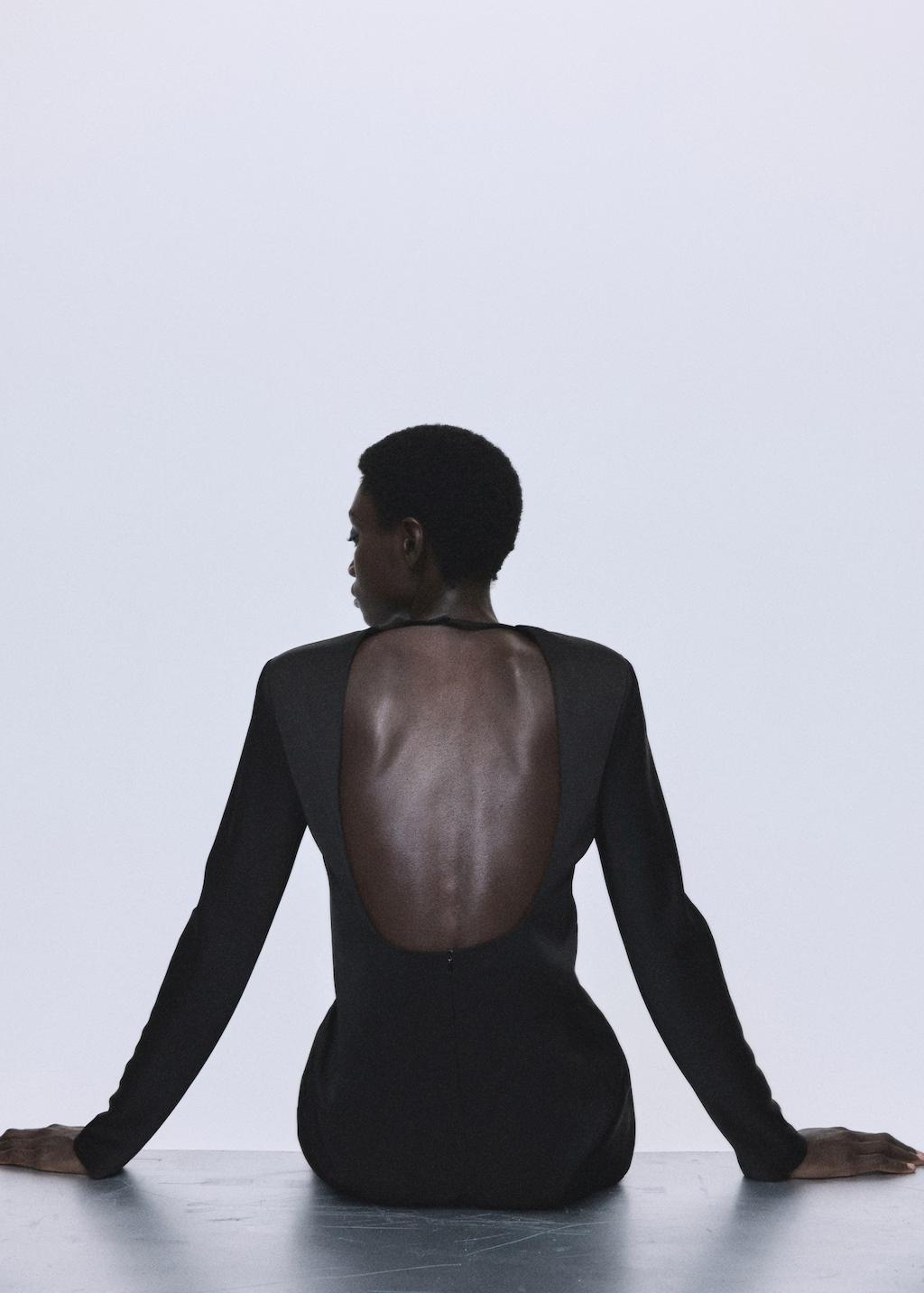 Diseño corto. Diseño entallado. Cuello redondo. Manga larga. Espalda abierta con tira. Bajo con encaje. Cierre de cremallera en la parte posterior. Cierre de botón en el cuello. Forro interior. Esta prenda pertenece a nuestra colección de fiesta y evento, diseñada para elevar tus looks en ocasiones especiales