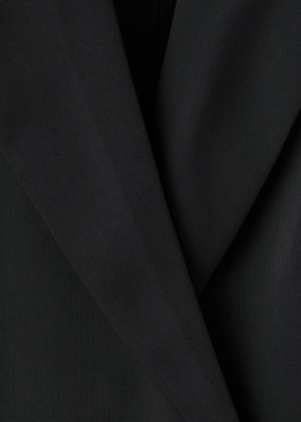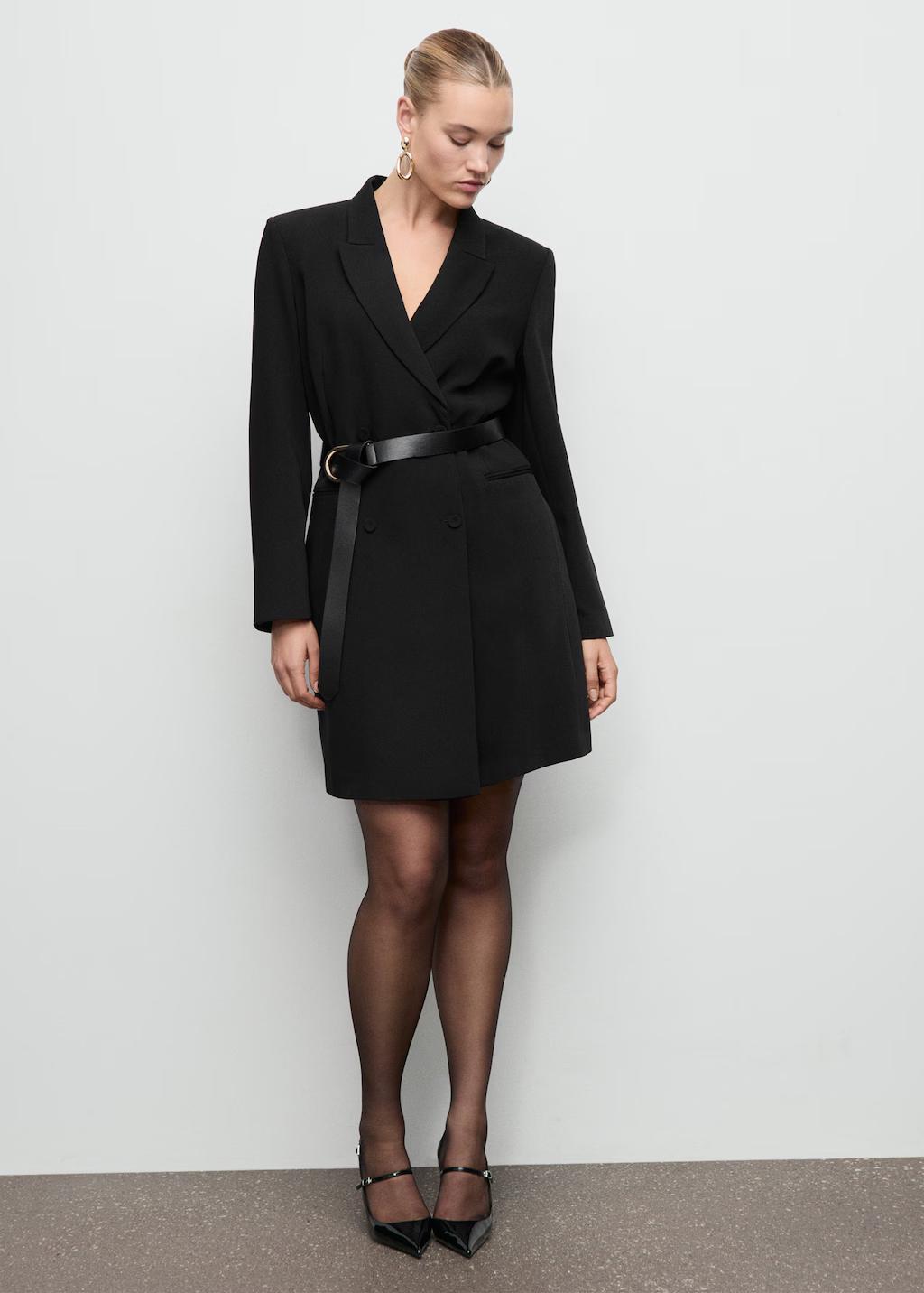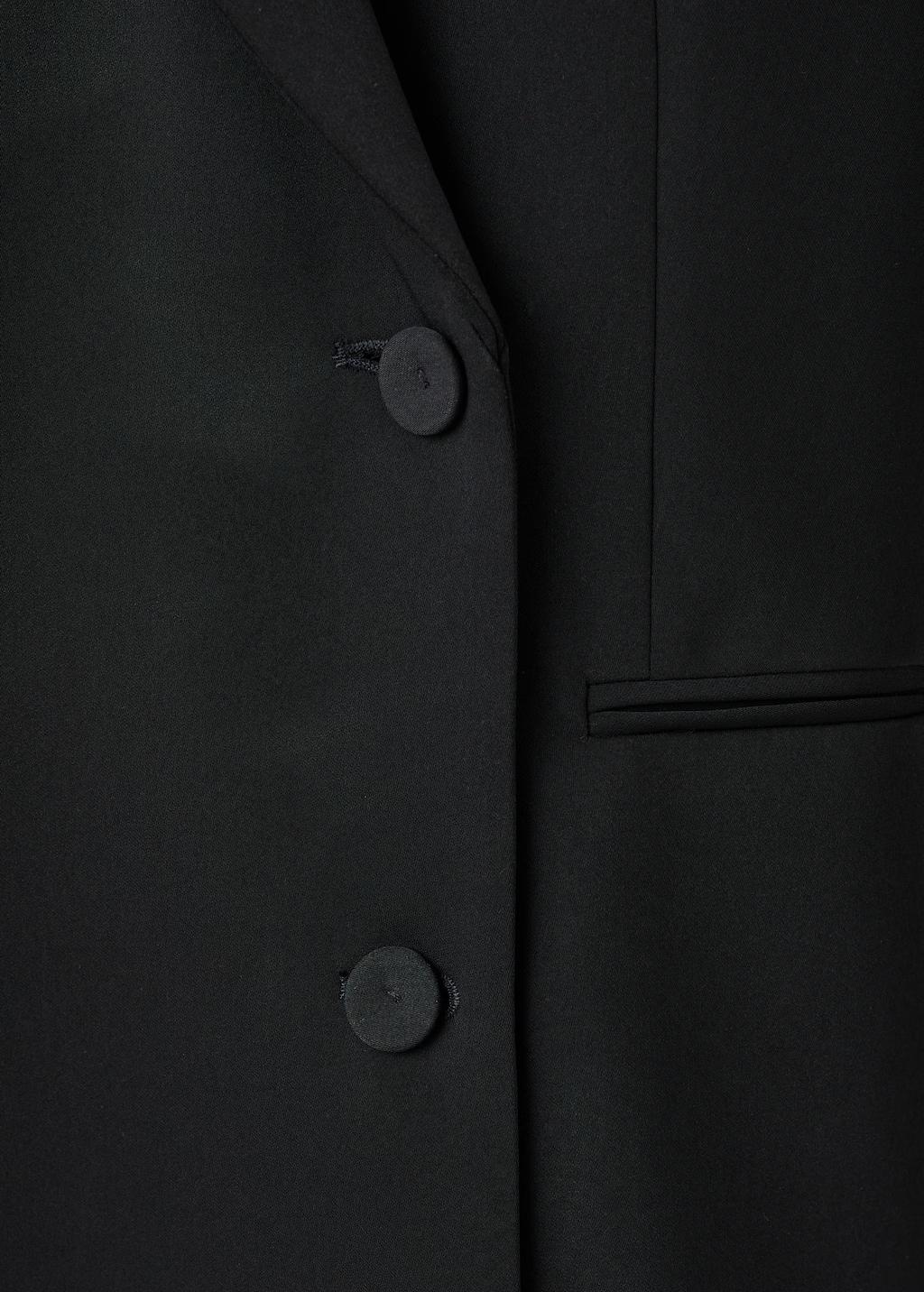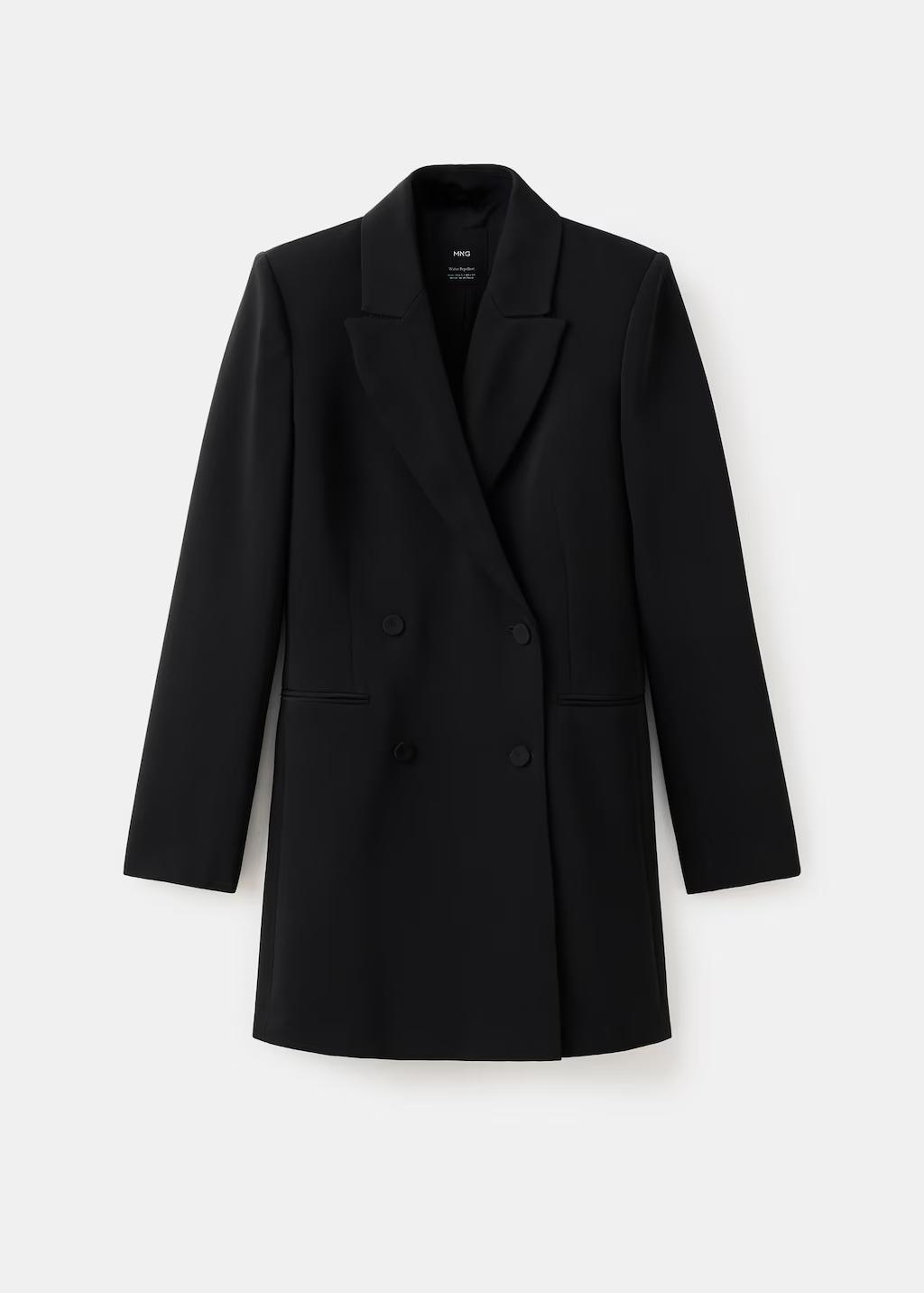 Diseño corto. Diseño recto. Cuello pico con solapa. Solapas con muesca. Manga larga. Dos bolsillos de ribete frontales. Cierre de doble botonadura. Forro interior. Disponible Plus