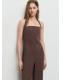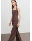 Diseño largo. Diseño recto. Cuello halter. Sin mangas. Espalda con escote. Panel fruncido elástico en la parte posterior. Cierre de cremallera en la parte posterior. Forro interior. Exclusivo Online